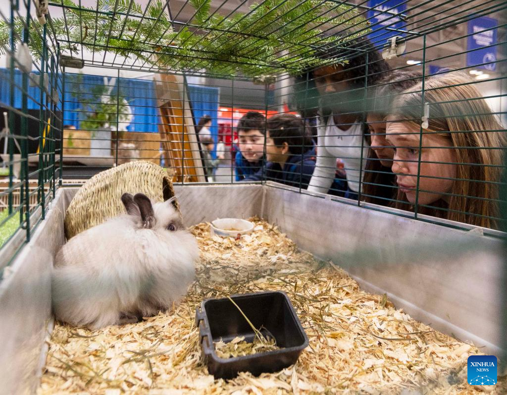 Visitors look at a rabbit at the 2024 Royal Agricultural Winter Fair in Toronto, Canada, on Nov. 1, 2024. Showcasing the best in agriculture, local food and more, the annual ten-day fair kicked off here on Friday. (Photo by Zou Zheng/Xinhua)