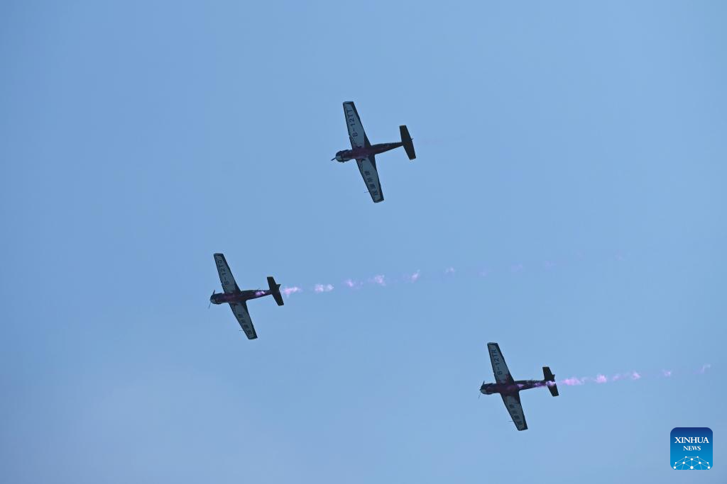 A French aerobatic team performs during the Nanchang Air Show in Nanchang, east China's Jiangxi Province, Nov. 2, 2024. The 2024 China Aviation Industry Conference and Nanchang Air Show kicked off here on Saturday. (Xinhua/Sui Shangjun)