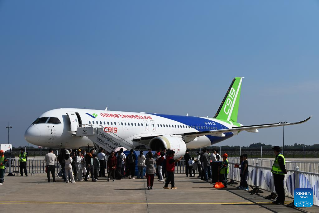 China's large passenger aircraft C919 is on display during the Nanchang Air Show in Nanchang, east China's Jiangxi Province, Nov. 2, 2024. The 2024 China Aviation Industry Conference and Nanchang Air Show kicked off here on Saturday. (Xinhua/Sui Shangjun)