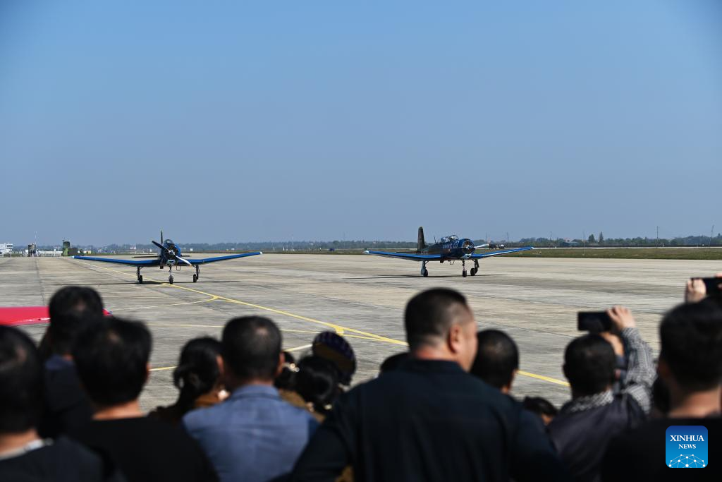 The Red Star aerobatic team prepares for a performance during the Nanchang Air Show in Nanchang, east China's Jiangxi Province, Nov. 2, 2024. The 2024 China Aviation Industry Conference and Nanchang Air Show kicked off here on Saturday. (Xinhua/Sui Shangjun)