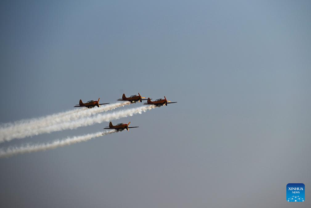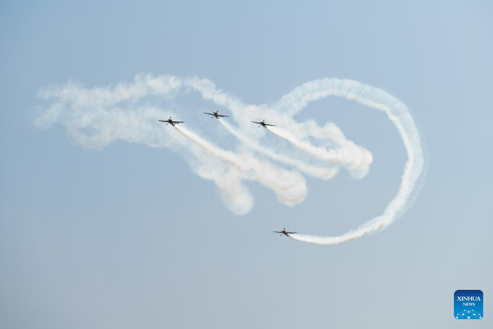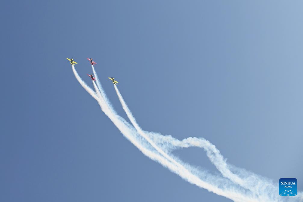 The Red Star aerobatic team performs during the Nanchang Air Show in Nanchang, east China's Jiangxi Province, Nov. 2, 2024. The 2024 China Aviation Industry Conference and Nanchang Air Show kicked off here on Saturday. (Xinhua/Sui Shangjun)