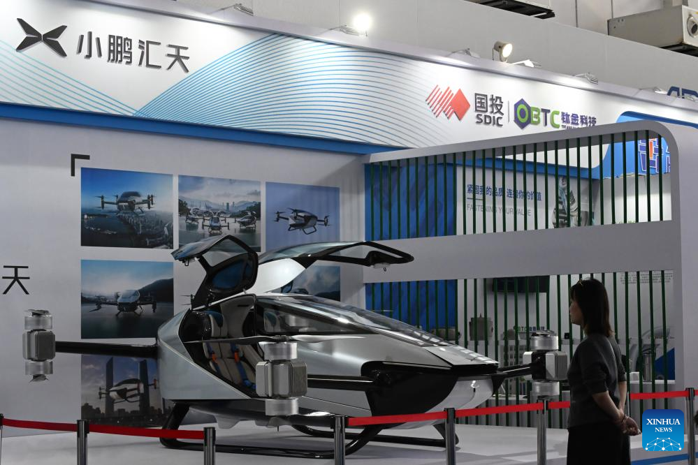 An Xpeng flying car is on display during the Nanchang Air Show in Nanchang, east China's Jiangxi Province, Nov. 2, 2024. The 2024 China Aviation Industry Conference and Nanchang Air Show kicked off here on Saturday. (Xinhua/Sui Shangjun)