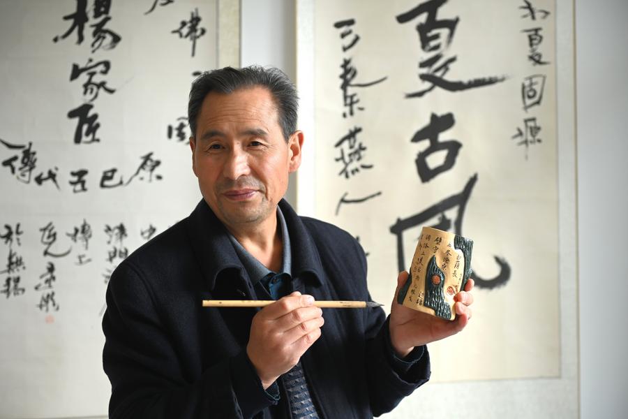 Yang Jianian shows a pen container at a gallery of Yang's painted sculpture in Longde County, northwest China's Ningxia Hui Autonomous Region, on Oct. 31, 2024. (Xinhua/Mao Zhu)Yang Jianian shows a tool bag used by his predecessors at a gallery of Yang's painted sculpture in Longde County, northwest China's Ningxia Hui Autonomous Region, on Oct. 31, 2024. (Xinhua/Mao Zhu)Yang Jianian introduces the procedure of making painted sculpture at a gallery of Yang's painted sculpture in Longde County, northwest China's Ningxia Hui Autonomous Region, on Oct. 31, 2024. (Xinhua/Mao Zhu)Yang Jianian (L) guides a student at a factory of Yang's painted sculpture in Longde County, northwest China's Ningxia Hui Autonomous Region on Oct. 31, 2024.(Xinhua/Mao Zhu)Yang Jianian designs patterns for painted sculptures at a gallery of Yang's painted sculpture in Longde County, northwest China's Ningxia Hui Autonomous Region, on Oct. 31, 2024. (Xinhua/Mao Zhu)This photo taken on Oct. 31, 2024 shows a clay sculpture at a gallery of Yang's painted sculpture in Longde County, northwest China's Ningxia Hui Autonomous Region. (Xinhua/Mao Zhu)This photo taken on Oct. 31, 2024 shows painted sculptures at a gallery of Yang's painted sculpture in Longde County, northwest China's Ningxia Hui Autonomous Region. (Xinhua/Mao Zhu)This photo taken on Oct. 31, 2024 shows a painted sculpture at a gallery of Yang's painted sculpture in Longde County, northwest China's Ningxia Hui Autonomous Region. (Xinhua/Mao Zhu)■