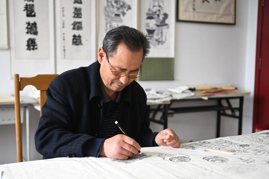LONGDE, Nov. 2 (Xinhua) -- Yang Jianian is the representative inheritor and the fifth generation descendant of Yang's painted sculpture, a national intangible cultural heritage with a history of more than 200 years. Yang learned the craft from his father and has since restored numerous clay sculptures and grotto statues.