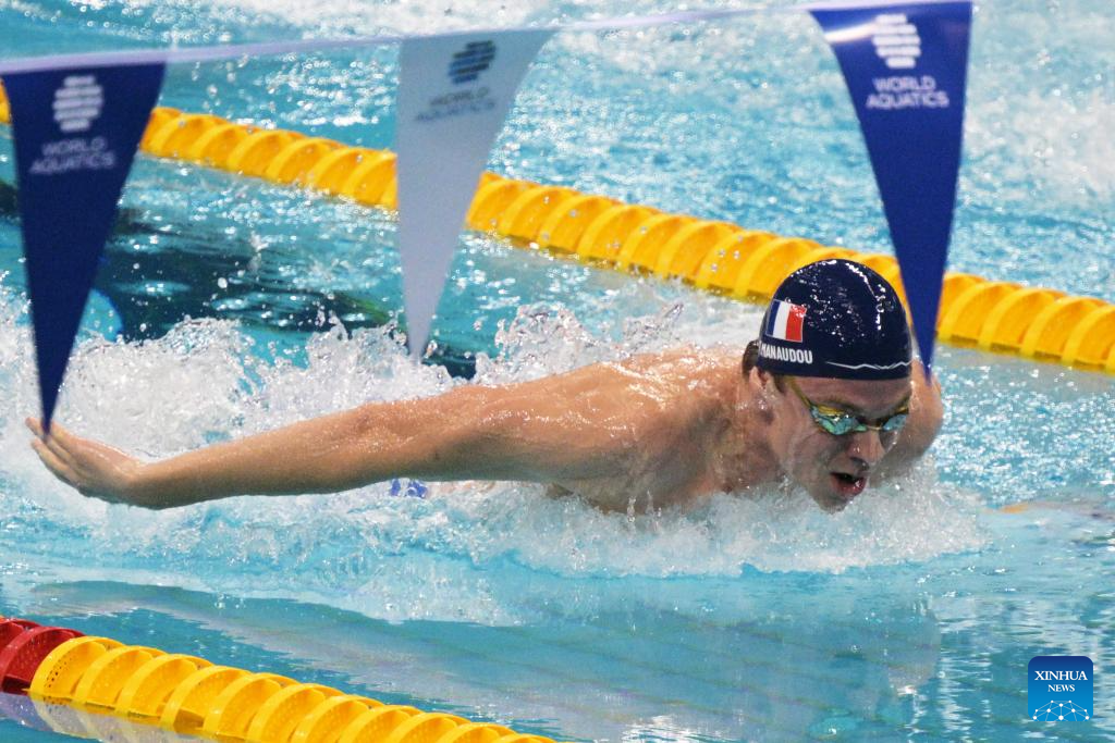 Leon Marchand of France competes during the men's 400m medley final at the World Aquatics Swimming World Cup in Singapore on Nov. 2, 2024. (Photo by Then Chih Wey/Xinhua)