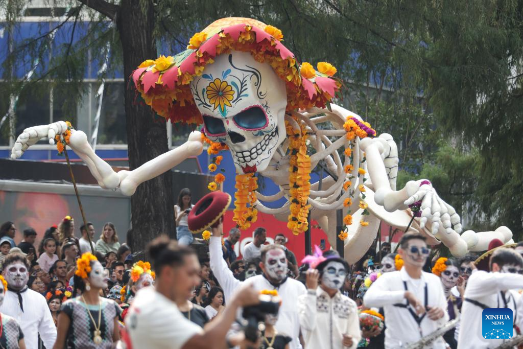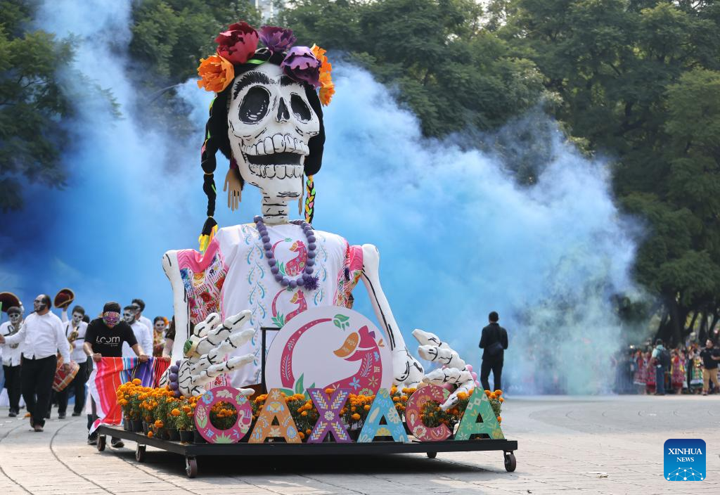 A float is pictured during the Day of the Dead Parade in downtown Mexico City, capital of Mexico, on Nov. 2, 2024. (Xinhua/Li Mengxin)
