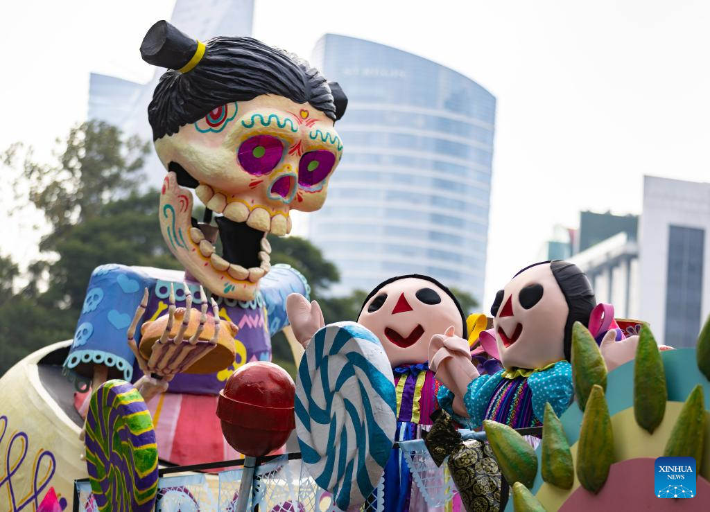 This photo taken on Nov. 2, 2024 shows an art installation during the Day of the Dead Parade in downtown Mexico City, capital of Mexico. (Xinhua/Li Mengxin)
