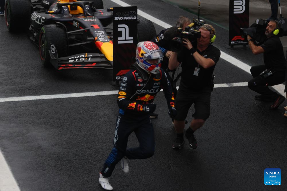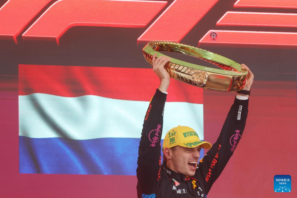 BEIJING, Nov.4 (Xinhua) -- A masterclass from Max Verstappen saw the Dutchman rise from 17th on the grid to take victory in an enthralling Brazilian Grand Prix and take a big step towards the 2024 Formula 1 World Championship title.