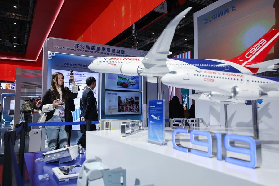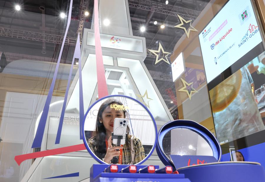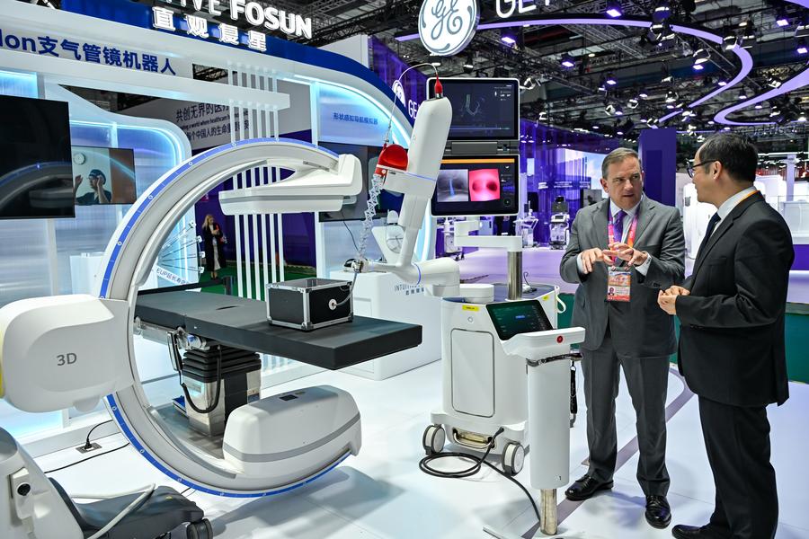 A visitor learns about a bronchoscope robot at the exhibition area of Intuitive Fosun during the seventh China International Import Expo (CIIE) in east China's Shanghai, Nov. 5, 2024. (Xinhua/Zhang Cheng)An installation is on display at the exhibition area of Lego during the seventh China International Import Expo (CIIE) in east China's Shanghai, Nov. 5, 2024. (Xinhua/Wang Xiang)Visitors experience the process of radioligand therapy using AR technology at the booth of Novartis during the seventh China International Import Expo (CIIE) in east China's Shanghai, Nov. 5, 2024. (Xinhua/Liu Ying)People talk at the Saudi Arabia Pavilion during the seventh China International Import Expo (CIIE) in east China's Shanghai, Nov. 5, 2024. France, Malaysia, Nicaragua, Saudi Arabia, Tanzania and Uzbekistan are guest countries of honor at the seventh CIIE. (Xinhua/Yin Gang)This photo taken on Nov. 5, 2024 shows the Nicaragua Pavilion during the seventh China International Import Expo (CIIE) in east China's Shanghai. France, Malaysia, Nicaragua, Saudi Arabia, Tanzania and Uzbekistan are guest countries of honor at the seventh CIIE. (Xinhua/Yin Gang)A woman takes photos at the France Pavilion during the seventh China International Import Expo (CIIE) in east China's Shanghai, Nov. 5, 2024. France, Malaysia, Nicaragua, Saudi Arabia, Tanzania and Uzbekistan are guest countries of honor at the seventh CIIE. (Xinhua/Yin Gang)Visitors talk with an exhibitor at the Tanzania Pavilion during the seventh China International Import Expo (CIIE) in east China's Shanghai, Nov. 5, 2024. France, Malaysia, Nicaragua, Saudi Arabia, Tanzania and Uzbekistan are guest countries of honor at the seventh CIIE. (Xinhua/Yin Gang)A visitor takes videos of a model of an aircraft at the booth of aircraft developer Commercial Aircraft Corporation of China, Ltd. at the China Pavilion during the seventh China International Import Expo (CIIE) in east China's Shanghai, Nov. 5, 2024. The China Pavilion, themed "Advance Chinese modernization and Jointly Pursue Global Development and Prosperity," focuses on showcasing the latest achievements in advancing China's modernization and high-level opening-up. (Xinhua/Du Xiaoyi)People pose for photos at the China Pavilion during the seventh China International Import Expo (CIIE) in east China's Shanghai, Nov. 5, 2024. The China Pavilion, themed "Advance Chinese modernization and Jointly Pursue Global Development and Prosperity," focuses on showcasing the latest achievements in advancing China's modernization and high-level opening-up. (Xinhua/Yin Gang)People visit the China Pavilion during the seventh China International Import Expo (CIIE) in east China's Shanghai, Nov. 5, 2024. The China Pavilion, themed "Advance Chinese modernization and Jointly Pursue Global Development and Prosperity," focuses on showcasing the latest achievements in advancing China's modernization and high-level opening-up. (Xinhua/Du Xiaoyi)A visitor takes photos at the China Pavilion during the seventh China International Import Expo (CIIE) in east China's Shanghai, Nov. 5, 2024. The China Pavilion, themed "Advance Chinese modernization and Jointly Pursue Global Development and Prosperity," focuses on showcasing the latest achievements in advancing China's modernization and high-level opening-up. (Xinhua/Yin Gang)■