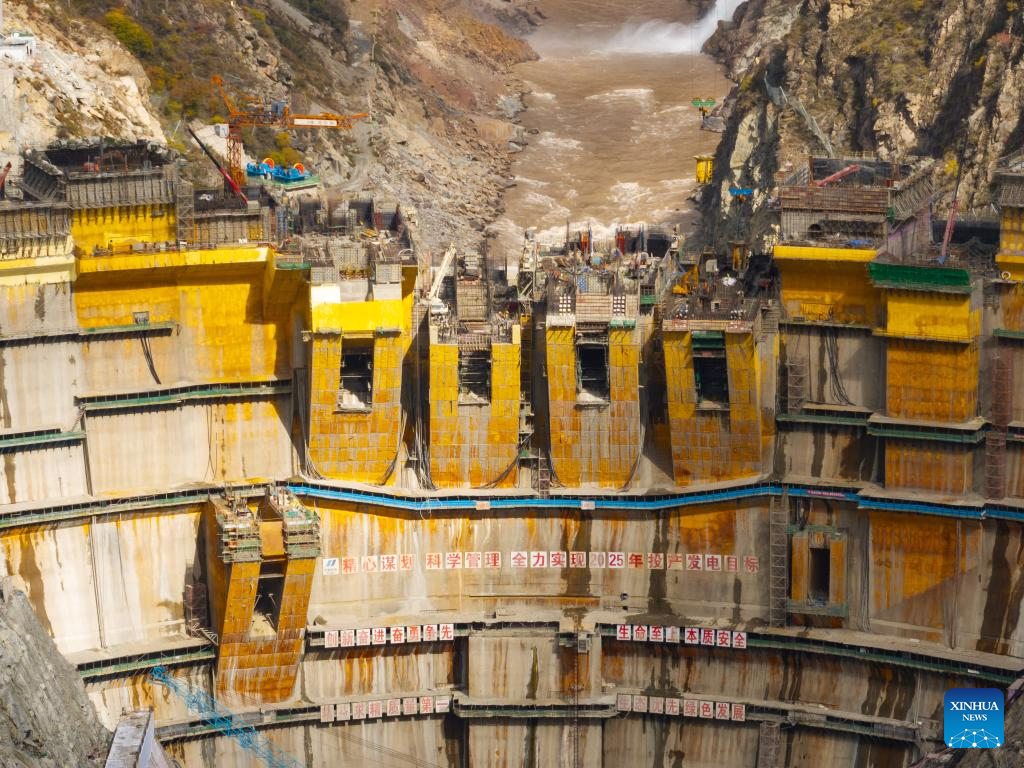 The hydropower station is expected to start operation of its first batch of generating units by the end of 2025 and the full operation is scheduled in 2026. (Xinhua/Shen Bohan)