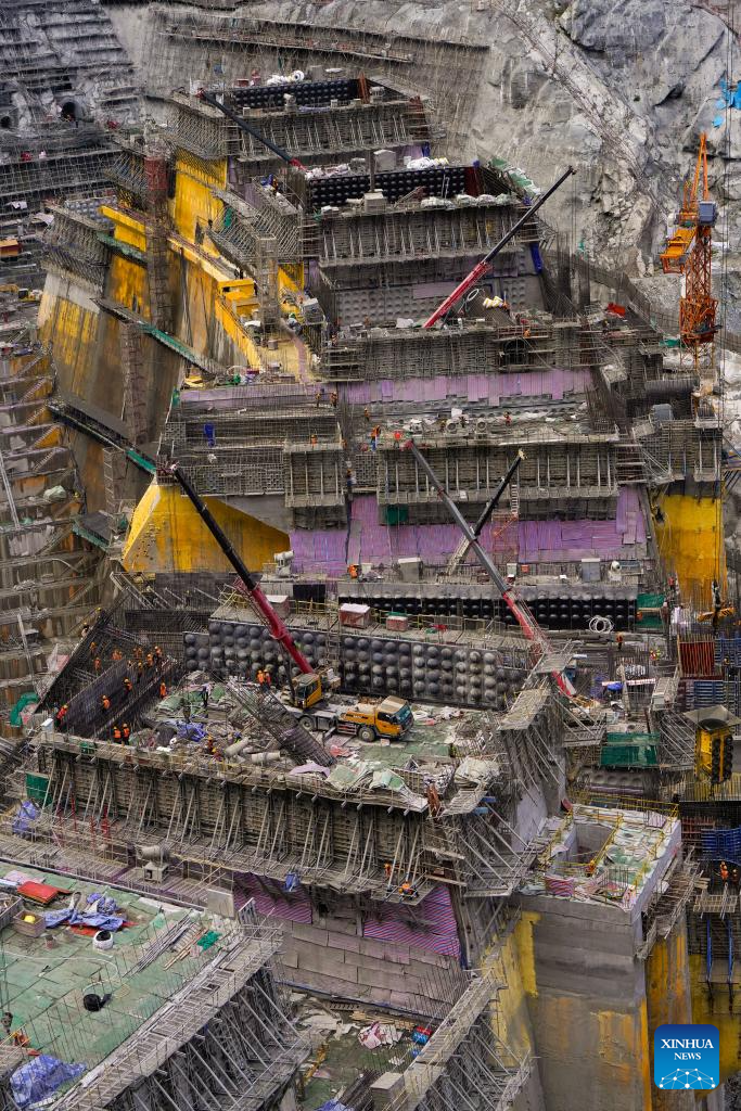 The hydropower station is expected to start operation of its first batch of generating units by the end of 2025 and the full operation is scheduled in 2026. (Xinhua/Wang Xi)