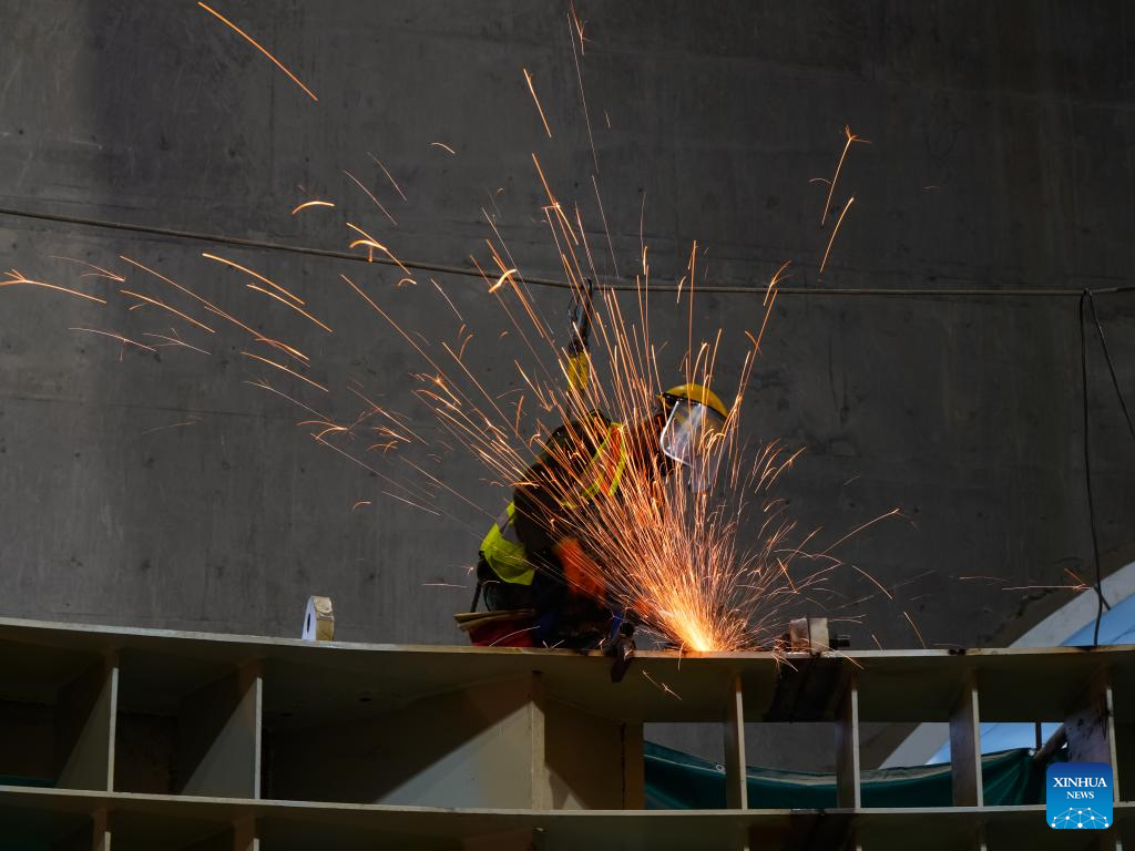 A worker operates at the construction site of Yebatan Hydropower Station in southwest China, Nov. 5, 2024. The Yebatan Hydropower Station is located at the junction of Baiyu County in southwest China's Sichuan Province and Konjo County in Xizang Autonomous Region.