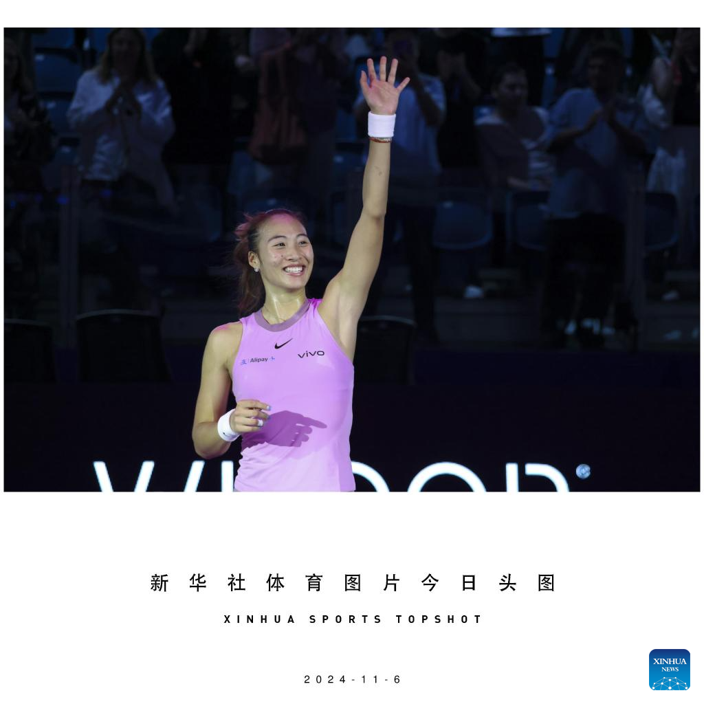 Zheng Qinwen waves to the spectators after the round robin match between Zheng Qinwen of China and Jasmine Paolini of Italy at WTA Finals tennis tournament in Riyadh, Saudi Arabia, Nov. 6, 2024. (Xinhua/Wang Haizhou)