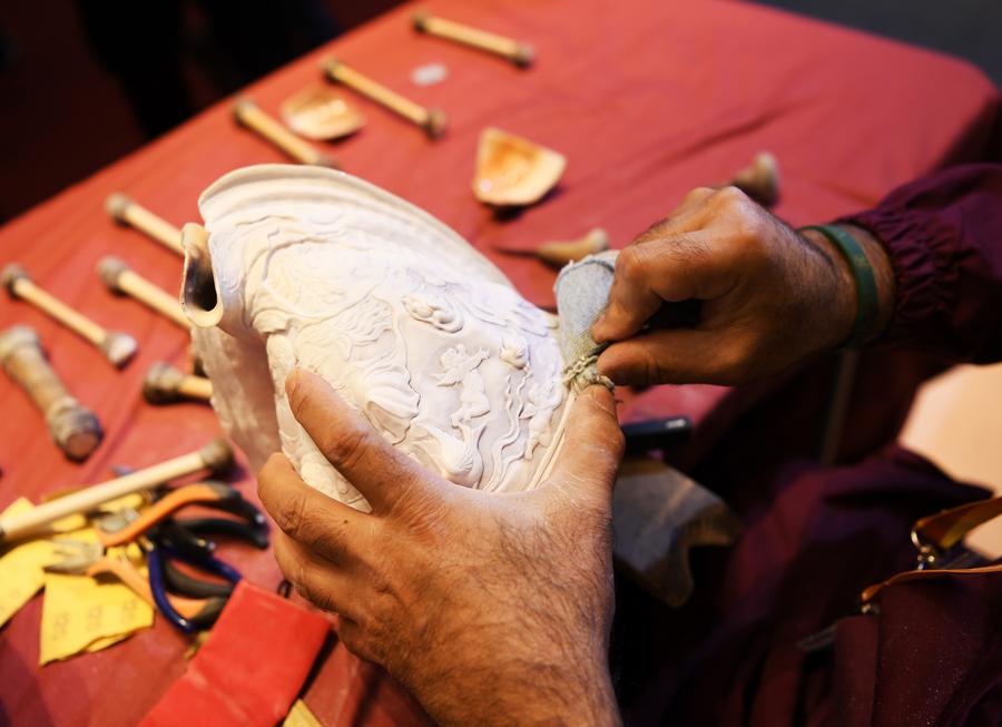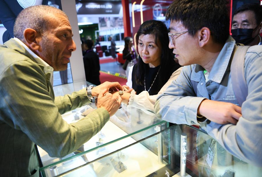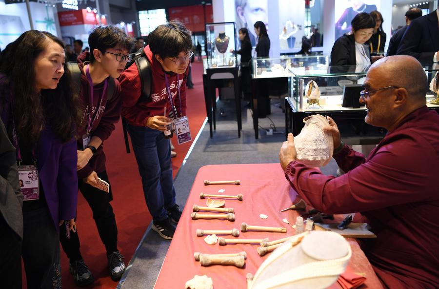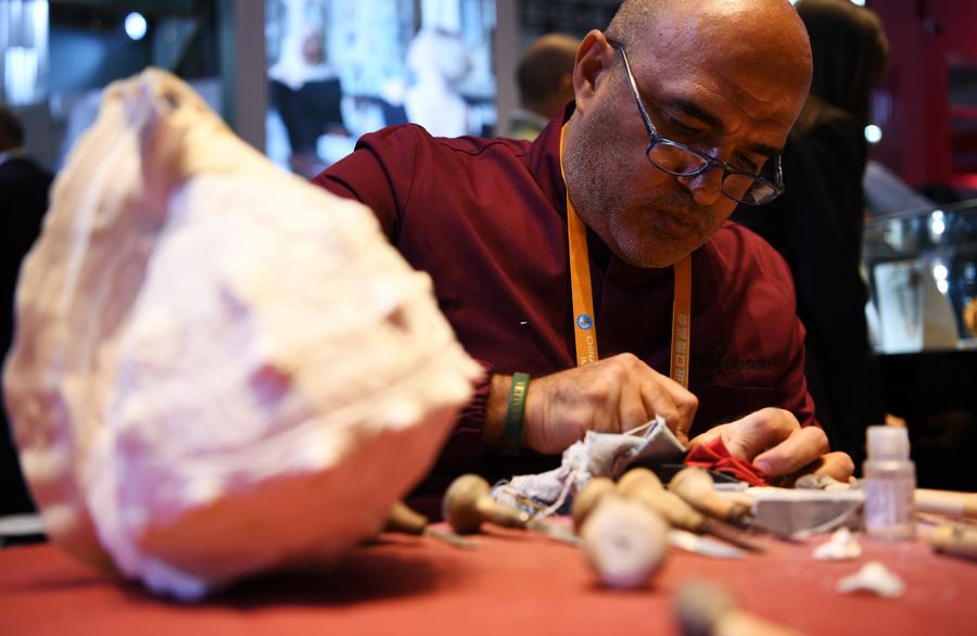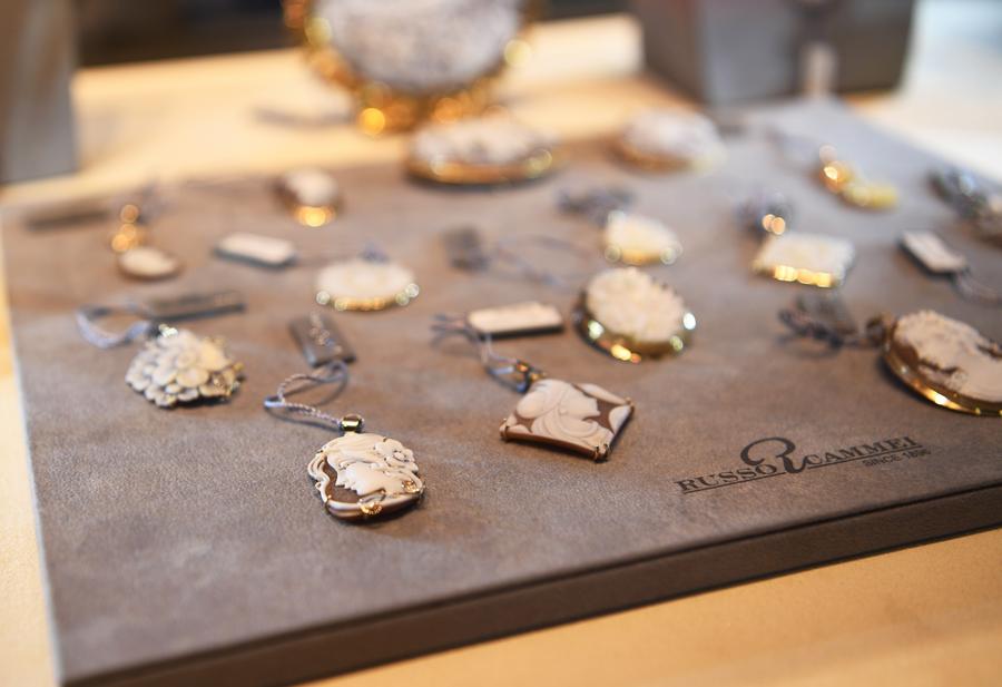 SHANGHAI, Nov. 7 (Xinhua) -- Russo Cammei, a renowned jewelry brand specializing in cameos based in Naples, southern Italy, has a century-old heritage and cultural legacy. It primarily produces and sells artisanal jewelry made from natural materials such as seashells and agate.
