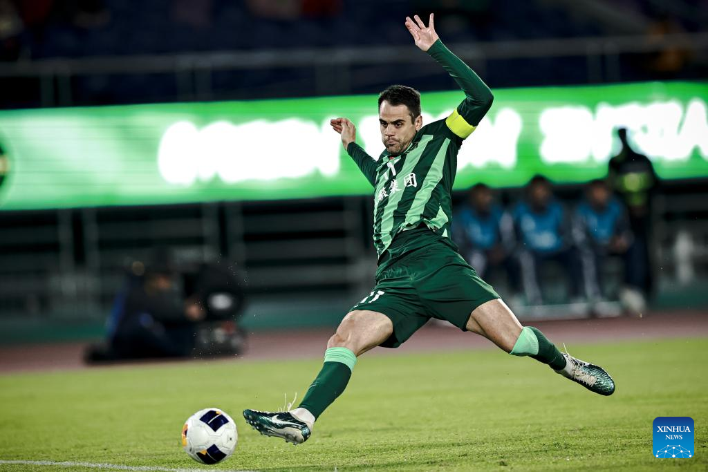 Franko Andrijasevic of Zhejiang FC shoots to score duirng the AFC Champions League Two group F match between China's Zhejiang FC and Thailand's Port FC in Hangzhou, east China's Zhejiang Province, Nov. 7, 2024. (Xinhua/Jiang Han)