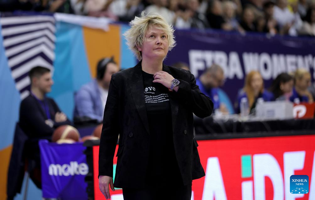 Serbia's head coach Marina Maljkovic gestures during the women's FIBA Eurobasket qualifier basketball match between Serbia and Portugal in Belgrade, Serbia on Nov. 7, 2024. (Photo by Predrag Milosavljevic/Xinhua)