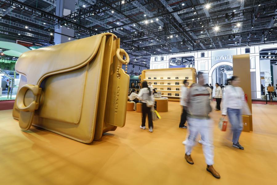 SHANGHAI, Nov. 10 (Xinhua) -- Visitors joined a long queue at the booth of U.S. fashion company COACH during this year's China International Import Expo (CIIE), eager to craft bag tags that reflect their unique style.
