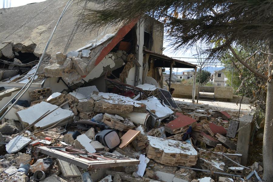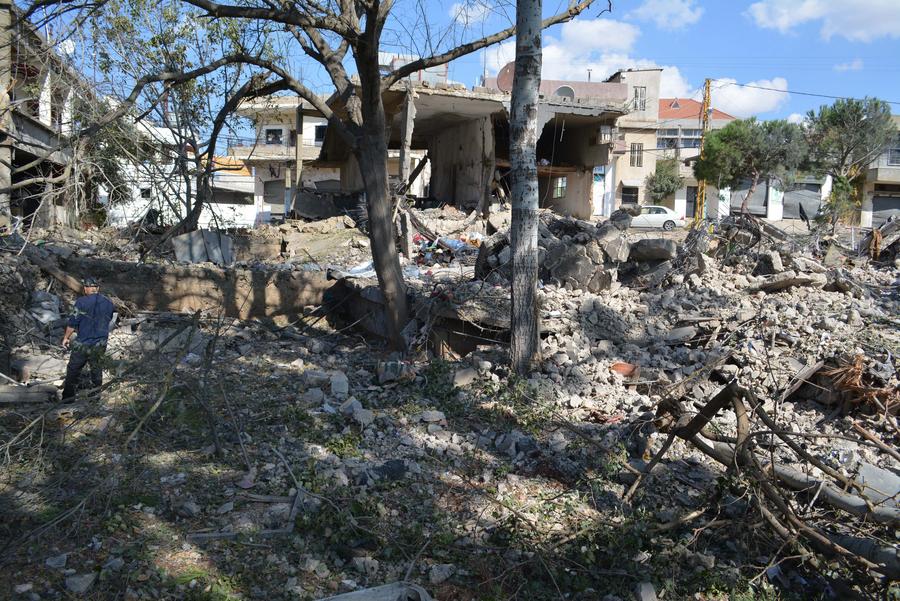 This photo taken on Nov. 8, 2024 shows the damage caused by Israeli airstrikes in Sahmar, Lebanon. (Photo by Taher Abu Hamdan/Xinhua)