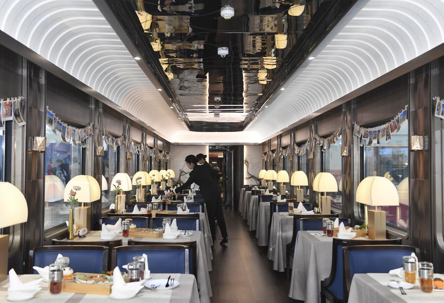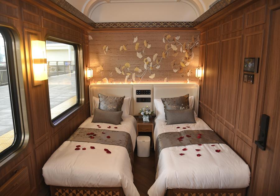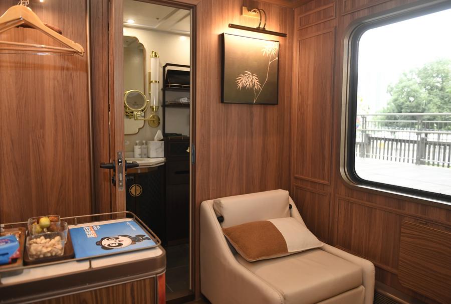This photo shows an accommodation box of a panda-themed tourist train at Anjing Railway Station in Chengdu, southwest China's Sichuan Province, Nov. 10, 2024. (Xinhua/Liu Kun)A bartender makes cocktail aboard a panda-themed tourist train at Anjing Railway Station in Chengdu, southwest China's Sichuan Province, Nov. 10, 2024. (Xinhua/Liu Kun)This photo shows the restaurant of a panda-themed tourist train at Anjing Railway Station in Chengdu, southwest China's Sichuan Province, Nov. 10, 2024. (Xinhua/Liu Kun)This photo shows an interior view of a panda-themed tourist train at Anjing Railway Station in Chengdu, southwest China's Sichuan Province, Nov. 10, 2024. (Xinhua/Liu Kun)This photo shows the lounge carriage of a panda-themed tourist train at Anjing Railway Station in Chengdu, southwest China's Sichuan Province, Nov. 10, 2024. (Xinhua/Liu Kun)This photo shows an interior view of a panda-themed tourist train at Anjing Railway Station in Chengdu, southwest China's Sichuan Province, Nov. 10, 2024. (Xinhua/Liu Kun)A panda-themed tourist train is seen at Anjing Railway Station in Chengdu, southwest China's Sichuan Province, Nov. 10, 2024. (Xinhua/Liu Kun)■