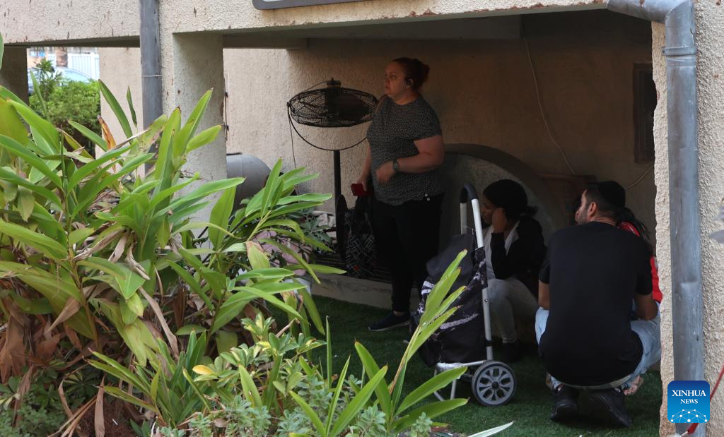People shelter themselves as the siren goes off in Tel Aviv, Israel, on Nov. 12, 2024. Two men were killed in Israel's northern city of Nahariya on Tuesday in a rocket attack from Lebanon, Israeli authorities said. According to the Israeli military, Hezbollah forces launched two barrages in the afternoon, the first of around 10 rockets targeting the north that led to the casualties, and the second of three rockets targeting the Tel Aviv area, which was intercepted by the Israeli Air Force. (Photo by Gil Cohen Magen/Xinhua)