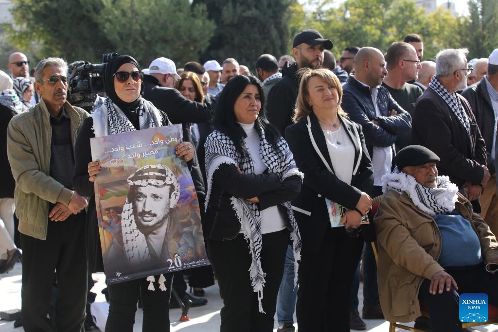 RAMALLAH, Nov. 11 (Xinhua) -- Palestinians in the West Bank commemorated on Monday the 20th anniversary of the death of late Palestinian leader Yasser Arafat.