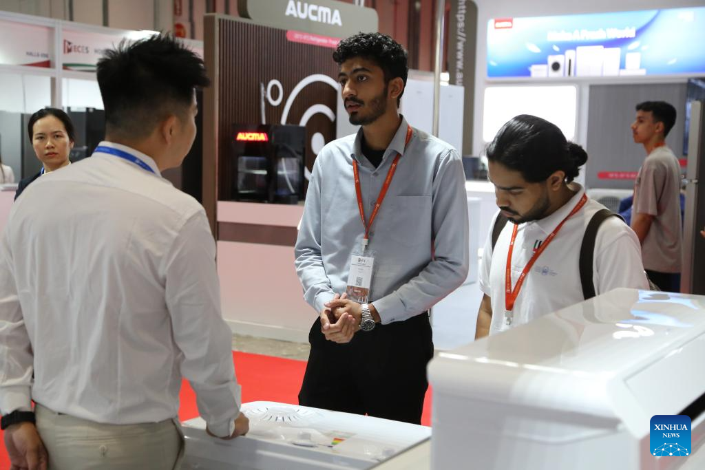 People visit the first Middle East Consumer Electronics Show in Abu Dhabi, the United Arab Emirates, Nov. 12, 2024. The consumer electronics show, featuring exclusively China-made home appliances and electronics, opened Tuesday at the Abu Dhabi National Exhibition Center in the United Arab Emirates. (Xinhua/Wen Xinnian)
