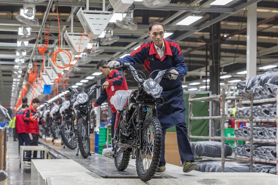 Staff members work on an assembly line at Chongqing Shineray Motorcycle Co., Ltd. in Chongqing, southwest China, Nov. 13, 2024. (Xinhua/Huang Wei)Staff members work on an assembly line at Chongqing Shineray Motorcycle Co., Ltd. in Chongqing, southwest China, Nov. 13, 2024. (Xinhua/Huang Wei)Staff members check motorcycles to be exported to Latin America at Chongqing Shineray Motorcycle Co., Ltd. in Chongqing, southwest China, Nov. 13, 2024. (Xinhua/Huang Wei)A staff member checks the information of motorcycles to be exported to Latin America at Chongqing Shineray Motorcycle Co., Ltd. in Chongqing, southwest China, Nov. 13, 2024. (Xinhua/Huang Wei)A staff member transfers motorcycles to be exported to Latin America at Chongqing Shineray Motorcycle Co., Ltd. in Chongqing, southwest China, Nov. 13, 2024. (Xinhua/Huang Wei)■