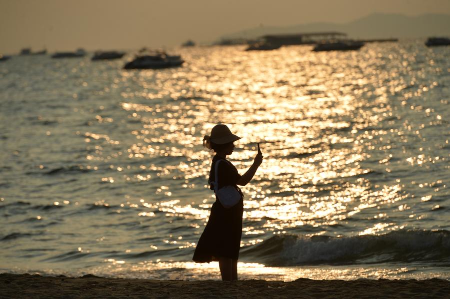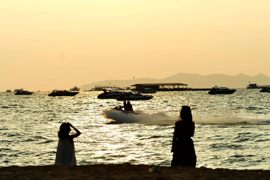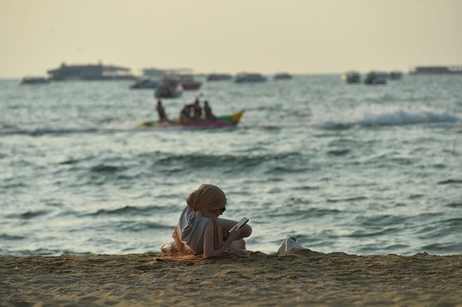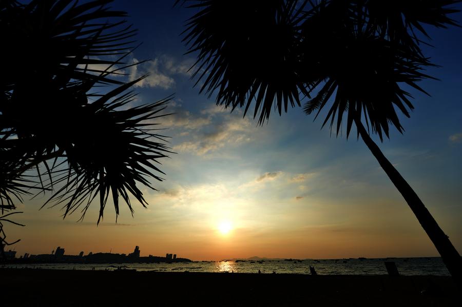 PATTAYA, Thailand, Nov. 14 (Xinhua) -- As the sun sets over the sea, Pattaya Beach in Thailand sees the most beautiful time of the day, with tourists strolling along the sand and enjoying their leisure time.