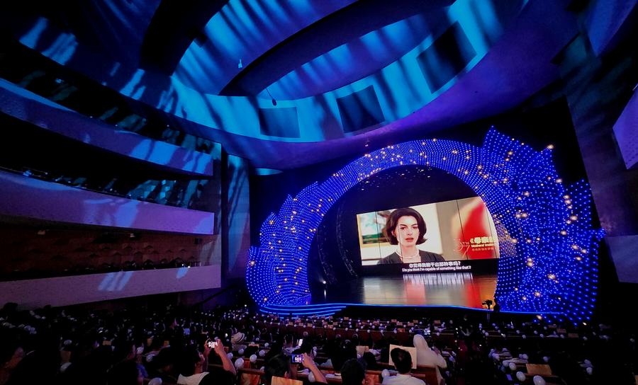 This photo taken on Nov. 13, 2024 shows the opening ceremony of the 2024 China Golden Rooster and Hundred Flowers Film Festival in Xiamen, southeast China's Fujian Province. (Xinhua/Wei Peiquan)