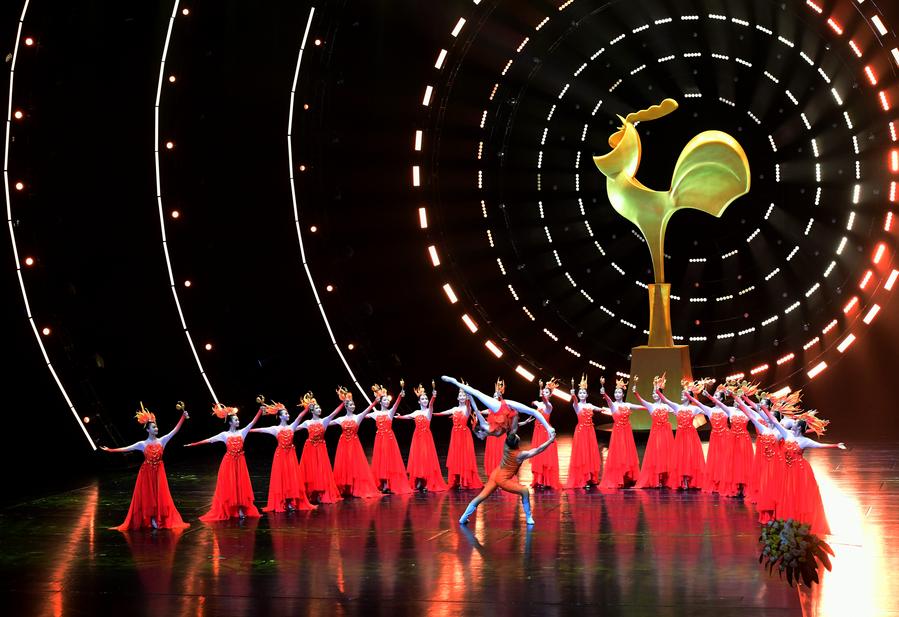 This photo taken on Nov. 13, 2024 shows the opening ceremony of the 2024 China Golden Rooster and Hundred Flowers Film Festival in Xiamen, southeast China's Fujian Province. (Xinhua/Wei Peiquan)This photo taken on Nov. 13, 2024 shows the opening ceremony of the 2024 China Golden Rooster and Hundred Flowers Film Festival in Xiamen, southeast China's Fujian Province. (Xinhua/Wei Peiquan)This photo taken on Nov. 13, 2024 shows highlights of the films nominated at the opening ceremony of the 2024 China Golden Rooster and Hundred Flowers Film Festival in Xiamen, southeast China's Fujian Province. (Xinhua/Wei Peiquan)Performers dance at the opening ceremony of the 2024 China Golden Rooster and Hundred Flowers Film Festival in Xiamen, southeast China's Fujian Province, Nov. 13, 2024. (Xinhua/Wei Peiquan)Casting and crew of the film "Burning Stars" are on stage at the opening ceremony of the 2024 China Golden Rooster and Hundred Flowers Film Festival in Xiamen, southeast China's Fujian Province, Nov. 13, 2024. (Xinhua/Wei Peiquan)This photo taken on Nov. 13, 2024 shows the opening ceremony of the 2024 China Golden Rooster and Hundred Flowers Film Festival in Xiamen, southeast China's Fujian Province. (Xinhua/Wei Peiquan)■