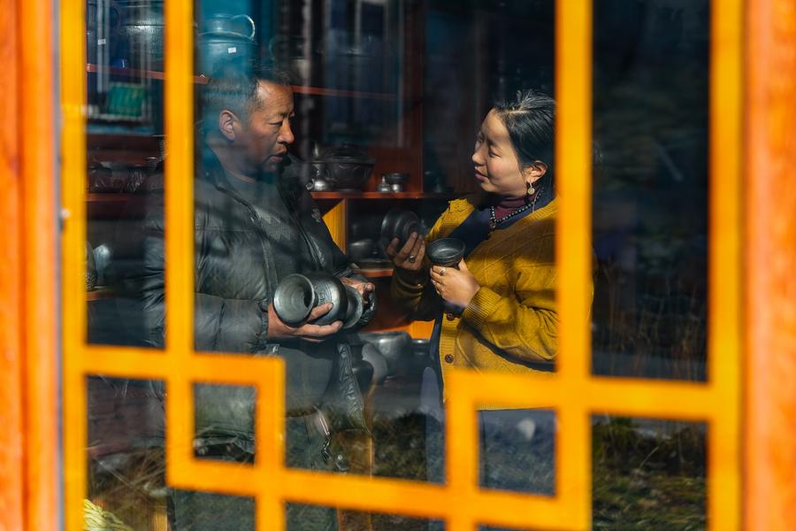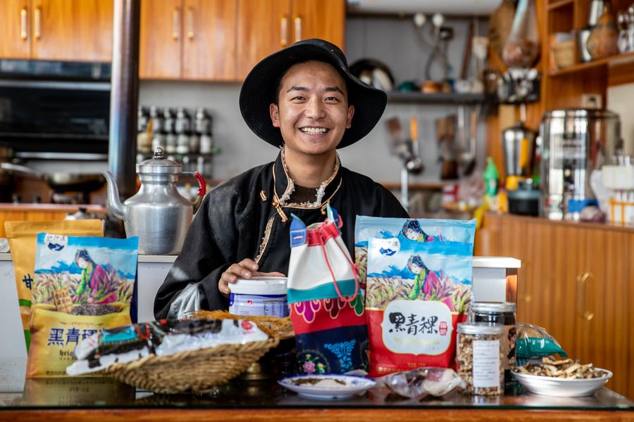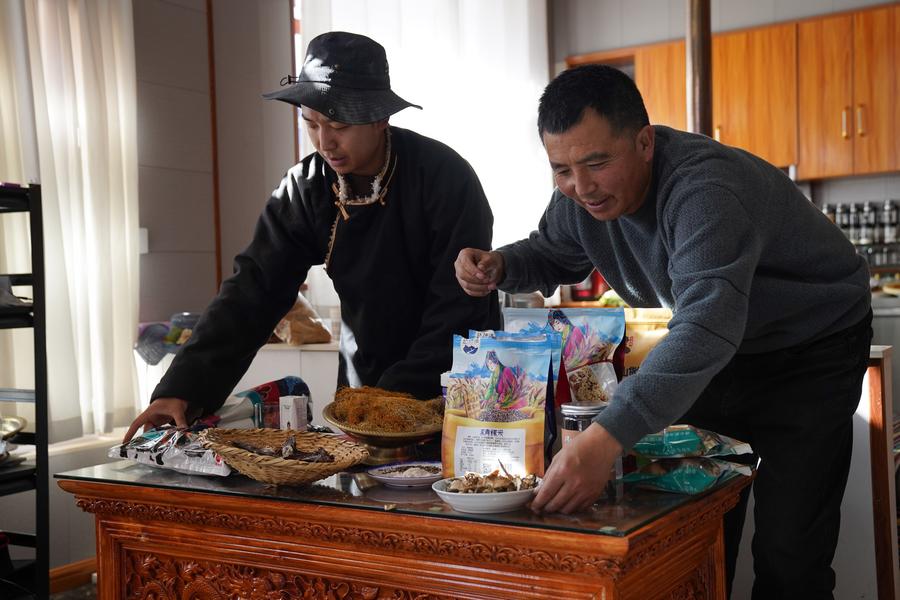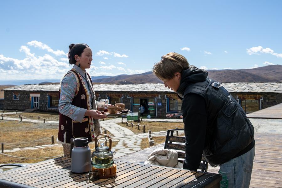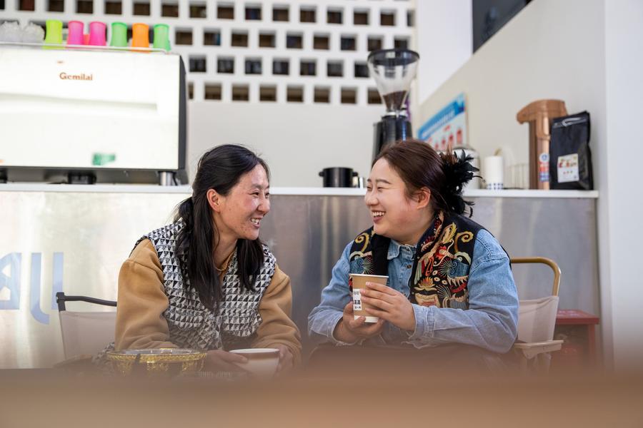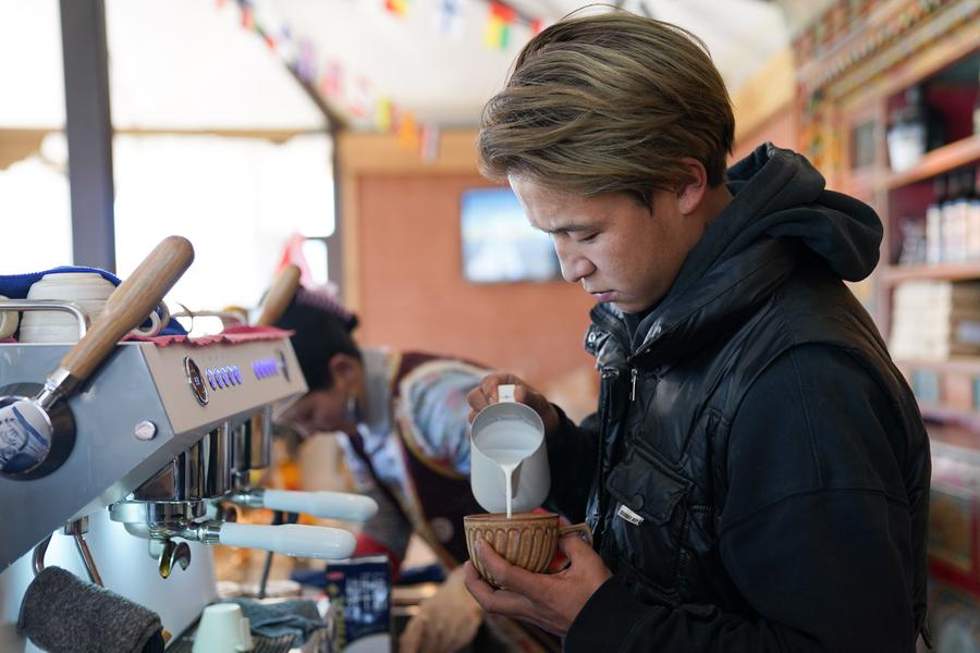 Dawa displays products for live-streaming sales in Jiawa Town of Litang County in Garze Tibetan Autonomous Prefecture, southwest China's Sichuan Province, Nov. 3, 2024. Born in 1999, Dawa grew up in Jiawa Town, Litang County. After graduating from college, Dawa returned to his hometown from Chengdu and became a tour guide. He usually records his daily life on the phone and posts it on social media. At the end of 2023, Dawa and his family started e-commerce live-streaming business to promote local products. (Xinhua/Chu Jiayin)Dawa (L) and his father make preparation for live-streaming in Jiawa Town of Litang County in Garze Tibetan Autonomous Prefecture, southwest China's Sichuan Province, Nov. 3, 2024. Born in 1999, Dawa grew up in Jiawa Town, Litang County. After graduating from college, Dawa returned to his hometown from Chengdu and became a tour guide. He usually records his daily life on the phone and posts it on social media. At the end of 2023, Dawa and his family started e-commerce live-streaming business to promote local products. (Xinhua/Xu Bingjie)Dawa (L) and his mother record a video in Jiawa Town of Litang County in Garze Tibetan Autonomous Prefecture, southwest China's Sichuan Province, Nov. 3, 2024. Born in 1999, Dawa grew up in Jiawa Town, Litang County. After graduating from college, Dawa returned to his hometown from Chengdu and became a tour guide. He usually records his daily life on the phone and posts it on social media. At the end of 2023, Dawa and his family started e-commerce live-streaming business to promote local products. (Xinhua/Chu Jiayin)Gyume Namkha mixes mineral pigments for painting Thangka at his workshop in Maisu Town of Dege County in Garze Tibetan Autonomous Prefecture, southwest China's Sichuan Province, Nov. 3, 2024. Located at an average altitude of about 3,500 meters, Maisu Town is famous for traditional Tibetan craftsmanship such as Thangka painting, pottery and wood carving. Post-90s Thangka artist Gyume Namkha began to learn Thangka painting from his father at the age of 6. Through inheritance and innovation, he added modern elements to form his own unique style and promote Thangka culture. Today, there are 41 painters and students in the Thangka workshop opened by Gyume Namkha. (Xinhua/Wang Xi)Gyume Namkha shows his Thangka work at his workshop in Maisu Town of Dege County in Garze Tibetan Autonomous Prefecture, southwest China's Sichuan Province, Nov. 3, 2024. Located at an average altitude of about 3,500 meters, Maisu Town is famous for traditional Tibetan craftsmanship such as Thangka painting, pottery and wood carving. Post-90s Thangka artist Gyume Namkha began to learn Thangka painting from his father at the age of 6. Through inheritance and innovation, he added modern elements to form his own unique style and promote Thangka culture. Today, there are 41 painters and students in the Thangka workshop opened by Gyume Namkha. (Xinhua/Wang Xi)Gyume Namkha paints Thangka at his workshop in Maisu Town of Dege County in Garze Tibetan Autonomous Prefecture, southwest China's Sichuan Province, Nov. 3, 2024. Located at an average altitude of about 3,500 meters, Maisu Town is famous for traditional Tibetan craftsmanship such as Thangka painting, pottery and wood carving. Post-90s Thangka artist Gyume Namkha began to learn Thangka painting from his father at the age of 6. Through inheritance and innovation, he added modern elements to form his own unique style and promote Thangka culture. Today, there are 41 painters and students in the Thangka workshop opened by Gyume Namkha. (Xinhua/Wang Xi)Gyume Namkha (R) gives instruction to an apprentice at his workshop in Maisu Town of Dege County in Garze Tibetan Autonomous Prefecture, southwest China's Sichuan Province, Nov. 3, 2024. Located at an average altitude of about 3,500 meters, Maisu Town is famous for traditional Tibetan craftsmanship such as Thangka painting, pottery and wood carving. Post-90s Thangka artist Gyume Namkha began to learn Thangka painting from his father at the age of 6. Through inheritance and innovation, he added modern elements to form his own unique style and promote Thangka culture. Today, there are 41 painters and students in the Thangka workshop opened by Gyume Namkha. (Xinhua/Wang Xi)Dake (R) and his wife work in a cafe in Balang Sumdho Village of Kangding City in Garze Tibetan Autonomous Prefecture, southwest China's Sichuan Province, Oct. 28, 2024. Born in 1997, Dake grew up in Balang Sumdho Village, where people have relied on herding for generations. In recent years, the village has begun to develop the tourism industry, and young people started returning to the village one after another, including Dake. Through continuous learning in making coffee, Dake created buttered latte featuring local characteristics. Together with his wife, Dake works as a barista in a cafe on the observation platform of Balang Sumdho Village. (Xinhua/Chu Jiayin)Dake poses for a photo in Balang Sumdho Village of Kangding City in Garze Tibetan Autonomous Prefecture, southwest China's Sichuan Province, Oct. 28, 2024. Born in 1997, Dake grew up in Balang Sumdho Village, where people have relied on herding for generations. In recent years, the village has begun to develop the tourism industry, and young people started returning to the village one after another, including Dake. Through continuous learning in making coffee, Dake created buttered latte featuring local characteristics. Together with his wife, Dake works as a barista in a cafe on the observation platform of Balang Sumdho Village. (Xinhua/Xu Bingjie)Dake makes coffee in a cafe in Balang Sumdho Village of Kangding City in Garze Tibetan Autonomous Prefecture, southwest China's Sichuan Province, Oct. 28, 2024. Born in 1997, Dake grew up in Balang Sumdho Village, where people have relied on herding for generations. In recent years, the village has begun to develop the tourism industry, and young people started returning to the village one af