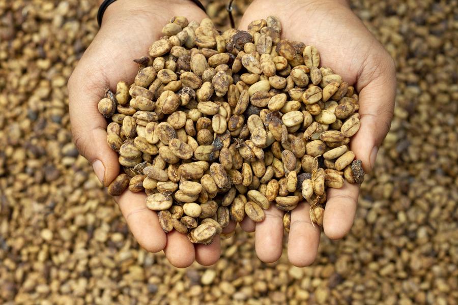 Photo taken on Nov. 15, 2024 shows a worker holds dried of arabica coffee beans at Aie Dingin village in Solok Regency, West Java, Indonesia. (Ade Yuandha/Xinhua)