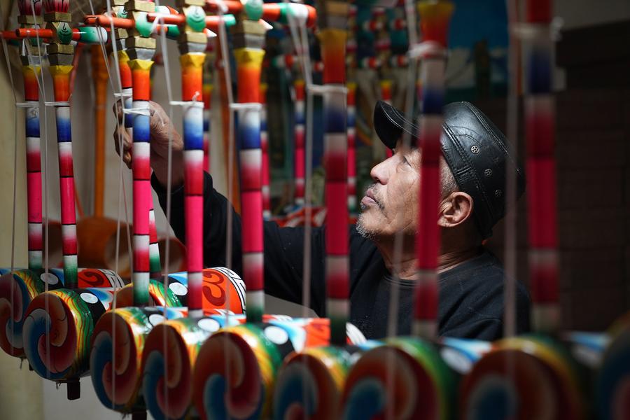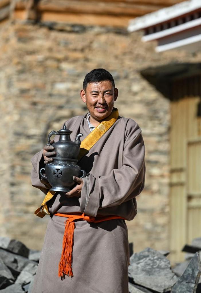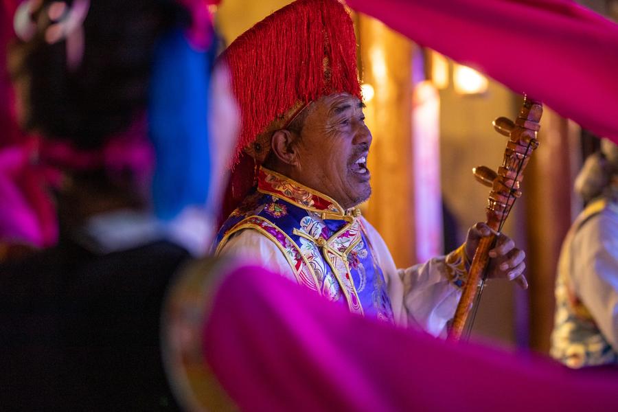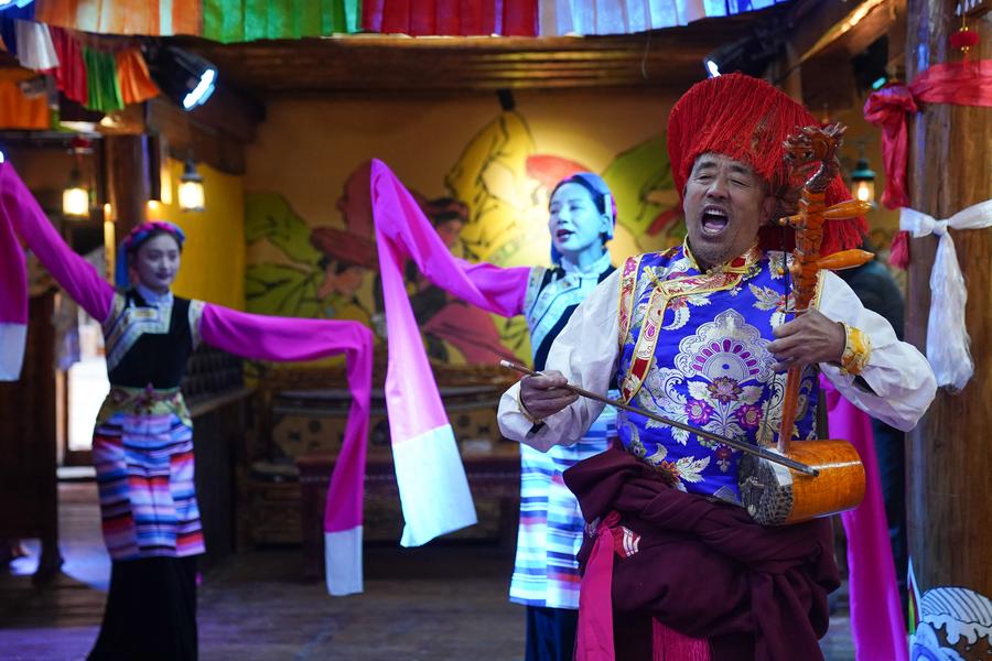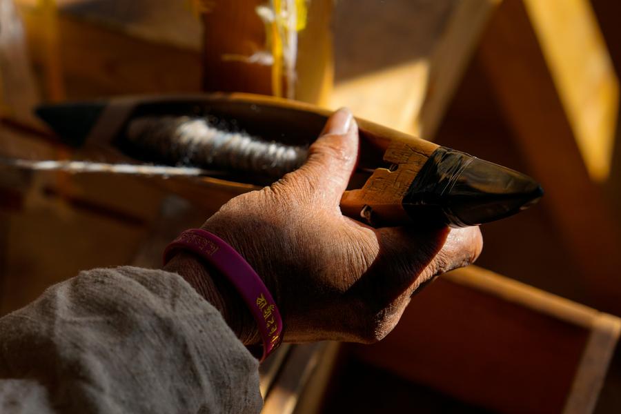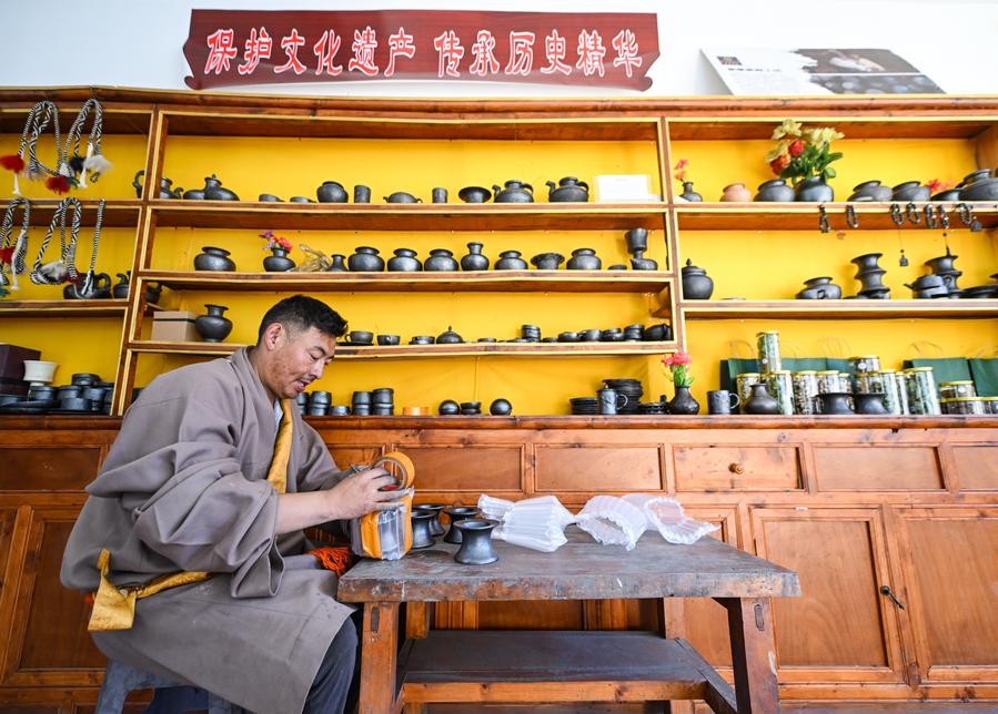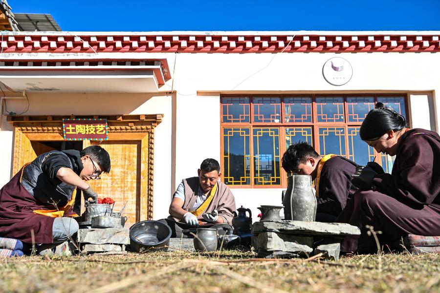 Doltru weaves textiles at her workshop in Dege County of Garze Tibetan Autonomous Prefecture, southwest China's Sichuan Province, Nov. 3, 2024. Women in the Nayo family have excellent weaving skills. They can weave high-quality textiles using wool from yak and sheep. Doltru, born in Maisu Town of Dege County in 1960, is the inheritor and promoter of the Nayo family's weaving craft. With the help of her daughter Tashi Chogtso, the products of Nayo's workshop grow in abundance and popularity. (Xinhua/Shen Bohan)Doltru (L) demonstrates weaving skill for an apprentice at her workshop in Dege County of Garze Tibetan Autonomous Prefecture, southwest China's Sichuan Province, Nov. 3, 2024. Women in the Nayo family have excellent weaving skills. They can weave high-quality textiles using wool from yak and sheep. Doltru, born in Maisu Town of Dege County in 1960, is the inheritor and promoter of the Nayo family's weaving craft. With the help of her daughter Tashi Chogtso, the products of Nayo's workshop grow in abundance and popularity. (Xinhua/Shen Bohan)Dawa Dakpa washes a product for further processing in Dege County of Garze Tibetan Autonomous Prefecture, southwest China's Sichuan Province, Nov. 3, 2024. Dawa Dakpa was born into a family of craftsmen who have been carrying on the Lima Bronze casting technique for about 200 years in Maisu Town of Dege County. Dawa Dakpa learned from his father Nyima when he was young, becoming the seventh generation inheritor of the Lima Bronze casting technique. He is also the representative inheritor of "Tibetan metal forging skills" in Garze Prefecture, Sichuan Province. (Xinhua/Shen Bohan)Dawa Dakpa (R) gives instruction to an apprentice during a training session in Dege County of Garze Tibetan Autonomous Prefecture, southwest China's Sichuan Province, Nov. 3, 2024. Dawa Dakpa was born into a family of craftsmen who have been carrying on the Lima Bronze casting technique for about 200 years in Maisu Town of Dege County. Dawa Dakpa learned from his father Nyima when he was young, becoming the seventh generation inheritor of the Lima Bronze casting technique. He is also the representative inheritor of "Tibetan metal forging skills" in Garze Prefecture, Sichuan Province. (Xinhua/Shen Bohan)Dawa Dakpa shows a product using Lima Bronze casting technique in Dege County of Garze Tibetan Autonomous Prefecture, southwest China's Sichuan Province, Nov. 3, 2024. Dawa Dakpa was born into a family of craftsmen who have been carrying on the Lima Bronze casting technique for about 200 years in Maisu Town of Dege County. Dawa Dakpa learned from his father Nyima when he was young, becoming the seventh generation inheritor of the Lima Bronze casting technique. He is also the representative inheritor of "Tibetan metal forging skills" in Garze Prefecture, Sichuan Province. (Xinhua/Shen Bohan)Tashi Wang (1st R) performs during Batang Xianzi dance in Batang County of Garze Tibetan Autonomous Prefecture, southwest China's Sichuan Province, Nov. 5, 2024.Xianzi dance is a popular art form in Batang County. The 66-year-old Tashi Wang, a master of Xianhu string instrument, is the provincial inheritor of Batang Xianzi dance. In order to protect and inherit Xianzi dance and Xianhu making skills, Tashi Wang built a Xianhu making workshop in his house, and performed in various activities to demonstrate the rhythm of Xianhu and the charm of Xianzi dance. (Xinhua/Xu Bingjie)Tashi Wang performs during Batang Xianzi dance in Batang County of Garze Tibetan Autonomous Prefecture, southwest China's Sichuan Province, Nov. 5, 2024. Xianzi dance is a popular art form in Batang County. The 66-year-old Tashi Wang, a master of Xianhu string instrument, is the provincial inheritor of Batang Xianzi dance. In order to protect and inherit Xianzi dance and Xianhu making skills, Tashi Wang built a Xianhu making workshop in his house, and performed in various activities to demonstrate the rhythm of Xianhu and the charm of Xianzi dance. (Xinhua/Chu Jiayin)Tashi Wang looks at Xianhu, a string instrument, at home in Batang County of Garze Tibetan Autonomous Prefecture, southwest China's Sichuan Province, Nov. 5, 2024.Xianzi dance is a popular art form in Batang County. The 66-year-old Tashi Wang, a master of Xianhu string instrument, is the provincial inheritor of Batang Xianzi dance. In order to protect and inherit Xianzi dance and Xianhu making skills, Tashi Wang built a Xianhu making workshop in his house, and performed in various activities to demonstrate the rhythm of Xianhu and the charm of Xianzi dance. (Xinhua/Xu Bingjie)Kunga Lobdue (2nd L) makes black pottery product in Maisu Town of Dege County of Garze Tibetan Autonomous Prefecture, southwest China's Sichuan Province, Nov. 3, 2024.Kunga Lobdue, 39, is the inheritor of Sichuan provincial intangible cultural heritage "Maisu black pottery" and the founder of Maisu black pottery workshop. He has been busy making black pottery products for a catering company recently. (Xinhua/Wang Xi)Kunga Lobdue packages black pottery products for delivery in Maisu Town of Dege County of Garze Tibetan Autonomous Prefecture, southwest China's Sichuan Province, Nov. 3, 2024. Kunga Lobdue, 39, is the inheritor of Sichuan provincial intangible cultural heritage "Maisu black pottery" and the founder of Maisu black pottery workshop. He has been busy making black pottery products for a catering company recently. (Xinhua/Wang Xi)Kunga Lobdue shows a black pottery product in Maisu Town of Dege County of Garze Tibetan Autonomous Prefecture, southwest China's Sichuan Province, Nov. 3, 2024. Kunga Lobdue, 39, is the inheritor of Sichuan provincial intangible cultural heritage "Maisu black pottery" and the founder of Maisu black pottery workshop. He has been busy making black pottery products for a catering company recently. (Xinhua/Wang Xi)■