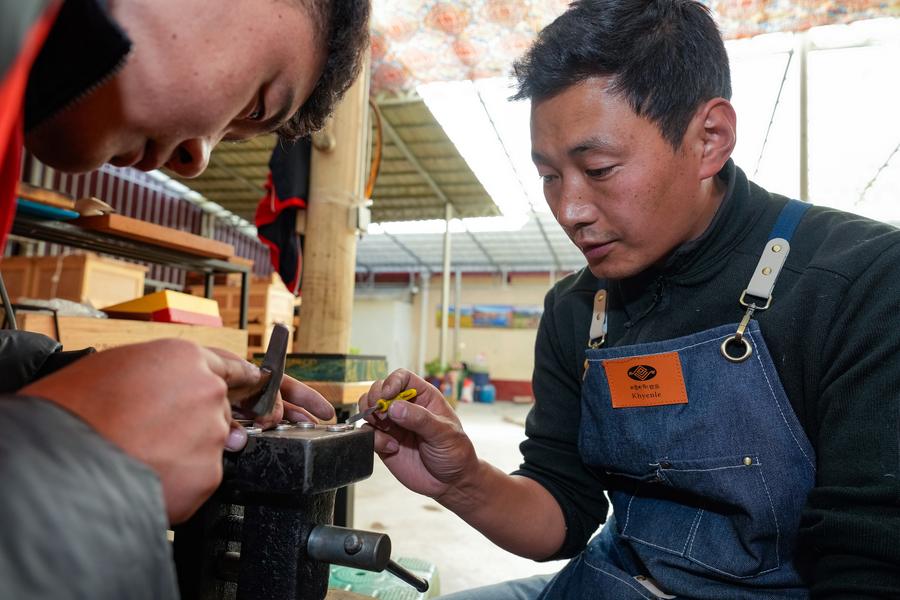 DEGE, Nov. 16 (Xinhua) -- On the western Sichuan plateau, with an average altitude of more than 3,000 meters, there are many traditional Tibetan craftsmen. Through inheritance and innovation, their handicrafts go out from the plateau to the domestic and overseas markets.