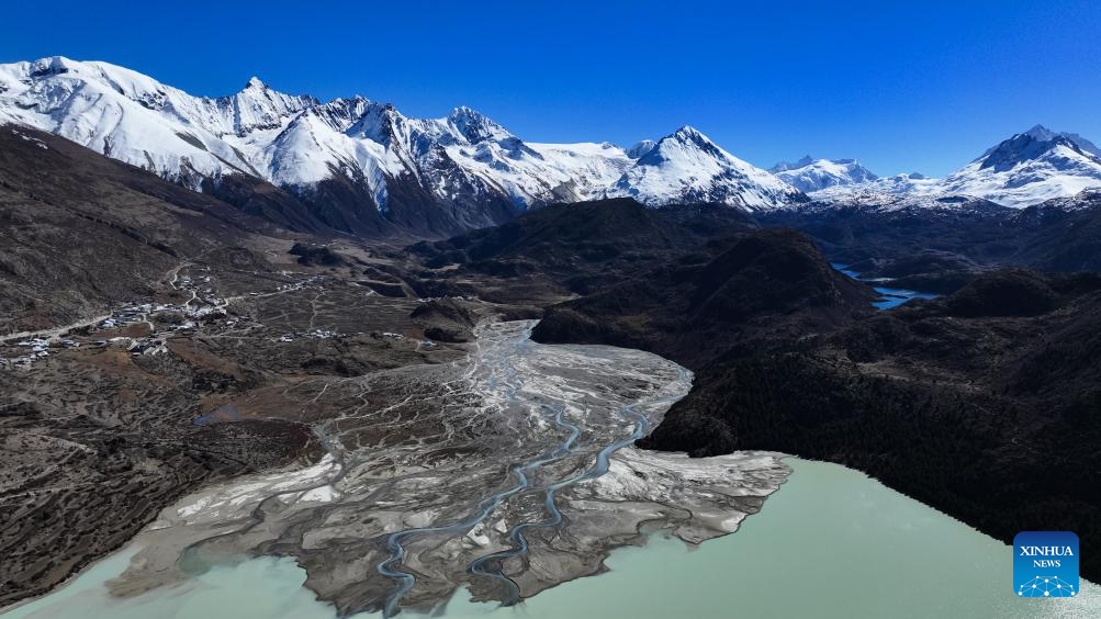 A drone photo taken on Nov. 15, 2024 shows the Laigu glacier in Baxoi County of Qamdo, southwest China's Xizang Autonomous Region. (Xinhua/Purbu Tsering)