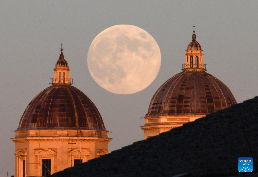 A supermoon is seen at the Campidoglio in Rome, Italy, Nov. 15, 2024. (Photo by Alberto Lingria/Xinhua)