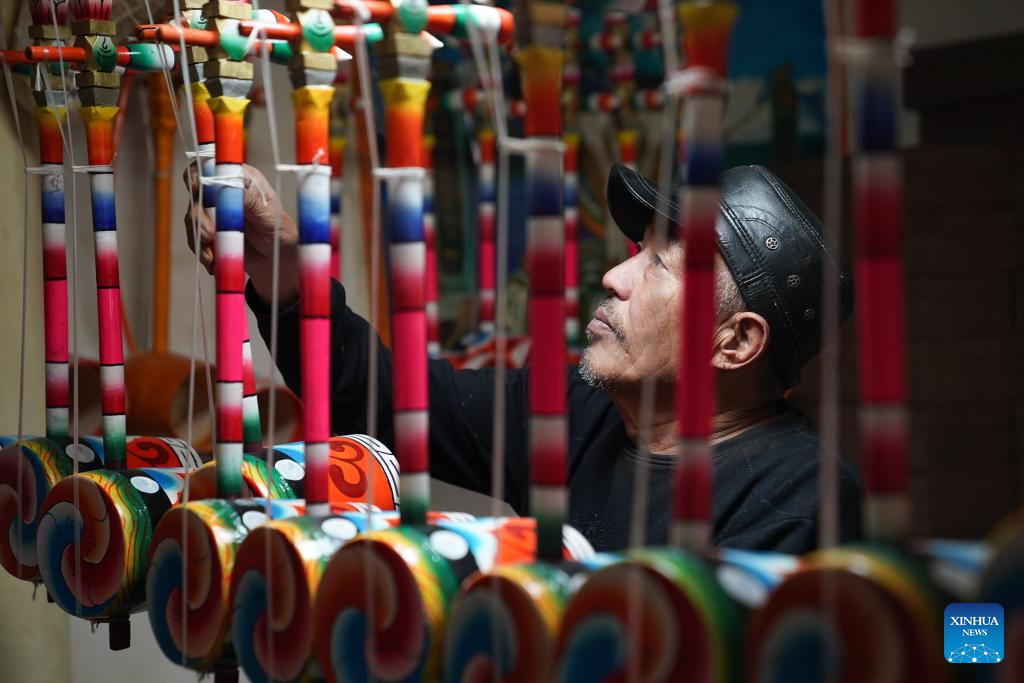 Xianzi dance is a popular art form in Batang County. The 66-year-old Tashi Wang, a master of Xianhu string instrument, is the provincial inheritor of Batang Xianzi dance. In order to protect and inherit Xianzi dance and Xianhu making skills, Tashi Wang built a Xianhu making workshop in his house, and performed in various activities to demonstrate the rhythm of Xianhu and the charm of Xianzi dance. (Xinhua/Xu Bingjie)