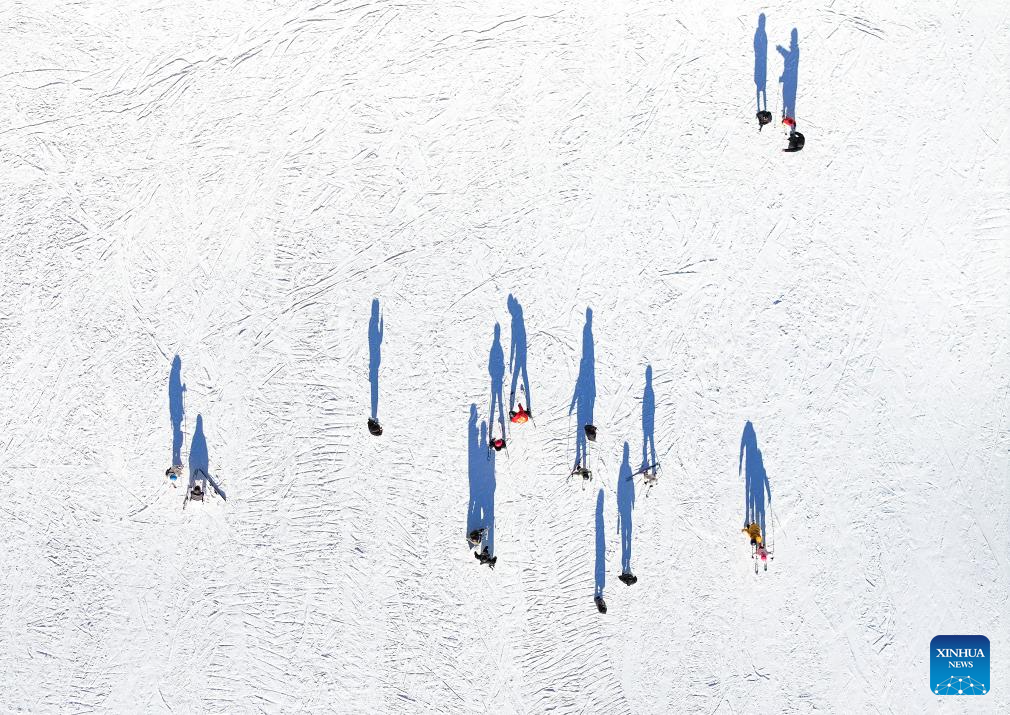 An aerial drone photo taken on Nov. 16, 2024 shows people skiing at a ski resort in Hulun Buir, north China's Inner Mongolia Autonomous Region. (Xinhua/Lian Zhen)