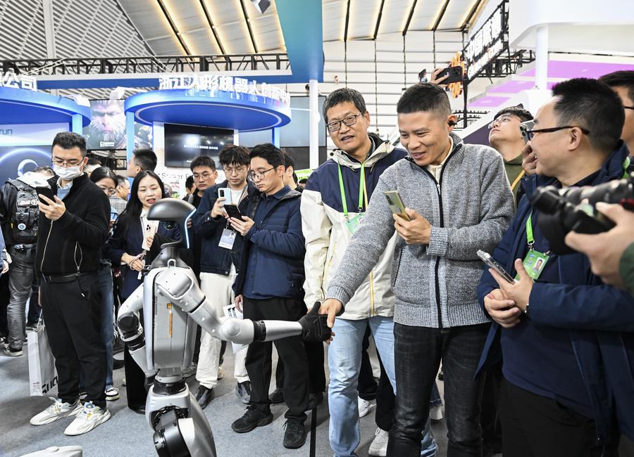 This photo taken on Nov. 19, 2024 shows an exterior view of the venue for the Light of Internet Expo in Wuzhen, east China's Zhejiang Province. (Xinhua/Li He)A humanoid robot (1st R) interacts with visitors at the Light of Internet Expo in Wuzhen, east China's Zhejiang Province, Nov. 19, 2024. (Xinhua/Li He)Visitors look at an intelligent connected autonomous vehicle at the Light of Internet Expo in Wuzhen, east China's Zhejiang Province, Nov. 19, 2024. (Xinhua/Li He)People visit the Light of Internet Expo in Wuzhen, east China's Zhejiang Province, Nov. 19, 2024. (Xinhua/Huang Zongzhi)A visitor shakes hands with a humanoid robot at the Light of Internet Expo in Wuzhen, east China's Zhejiang Province, Nov. 19, 2024. (Xinhua/Cai Xiangxin)A visitor tries an exoskeleton gear for heavy-lifting at the Light of Internet Expo in Wuzhen, east China's Zhejiang Province, Nov. 19, 2024. (Xinhua/Li He)Visitors try their hands on the video game "Black Myth: Wukong" at the Light of Internet Expo in Wuzhen, east China's Zhejiang Province, Nov. 19, 2024. (Xinhua/Cai Xiangxin)A child tries her hands on a digital flight simulator at the Light of Internet Expo in Wuzhen, east China's Zhejiang Province, Nov. 19, 2024. (Xinhua/Huang Zongzhi)A child poses for photos with a fictional image of his generated by AI system at the Light of Internet Expo in Wuzhen, east China's Zhejiang Province, Nov. 19, 2024. (Xinhua/Li He)A visitor interacts with a smart robotic dog at the Light of Internet Expo in Wuzhen, east China's Zhejiang Province, Nov. 19, 2024. (Xinhua/Cai Xiangxin)■