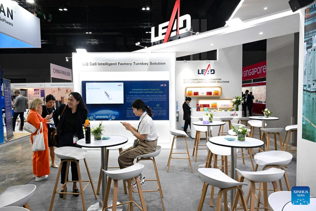 This photo taken on Nov. 19, 2024 shows the stall of Wuxi Lead Intelligent Equipment Co., Ltd. (LEAD) at the Smart Nation Expo 2024 in Kuala Lumpur, Malaysia. Chinese tech companies participating in the Smart Nation Expo 2024 drew great interest on Tuesday with electric vehicles (EV), charging station manufacturers and solutions and management providers at the forefront.(Xinhua/Cheng Yiheng)