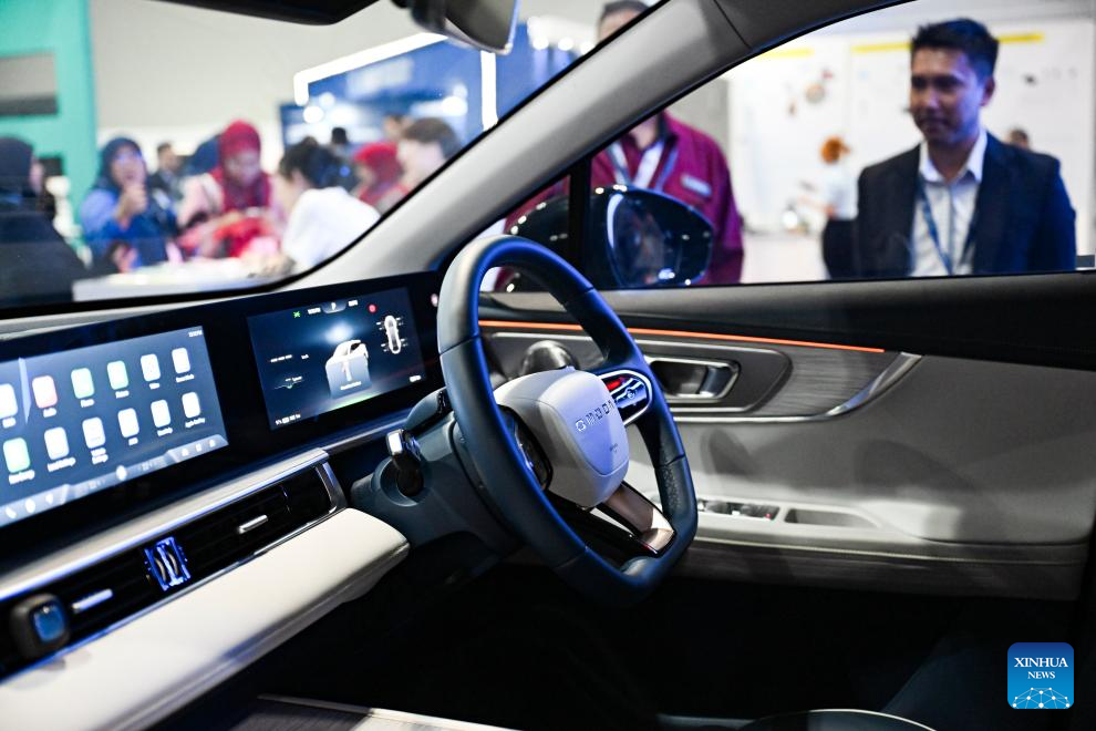 This photo taken on Nov. 19, 2024 shows the interior of a vehicle by Chinese automaker Chery at the Smart Nation Expo 2024 in Kuala Lumpur, Malaysia. Chinese tech companies participating in the Smart Nation Expo 2024 drew great interest on Tuesday with electric vehicles (EV), charging station manufacturers and solutions and management providers at the forefront.(Xinhua/Cheng Yiheng)