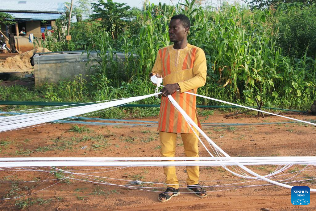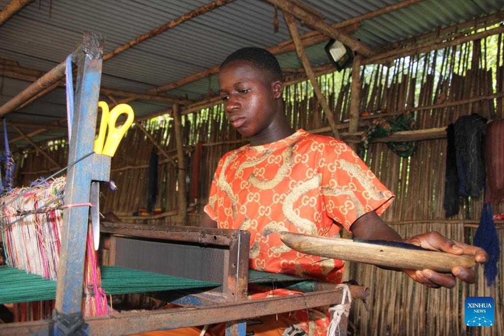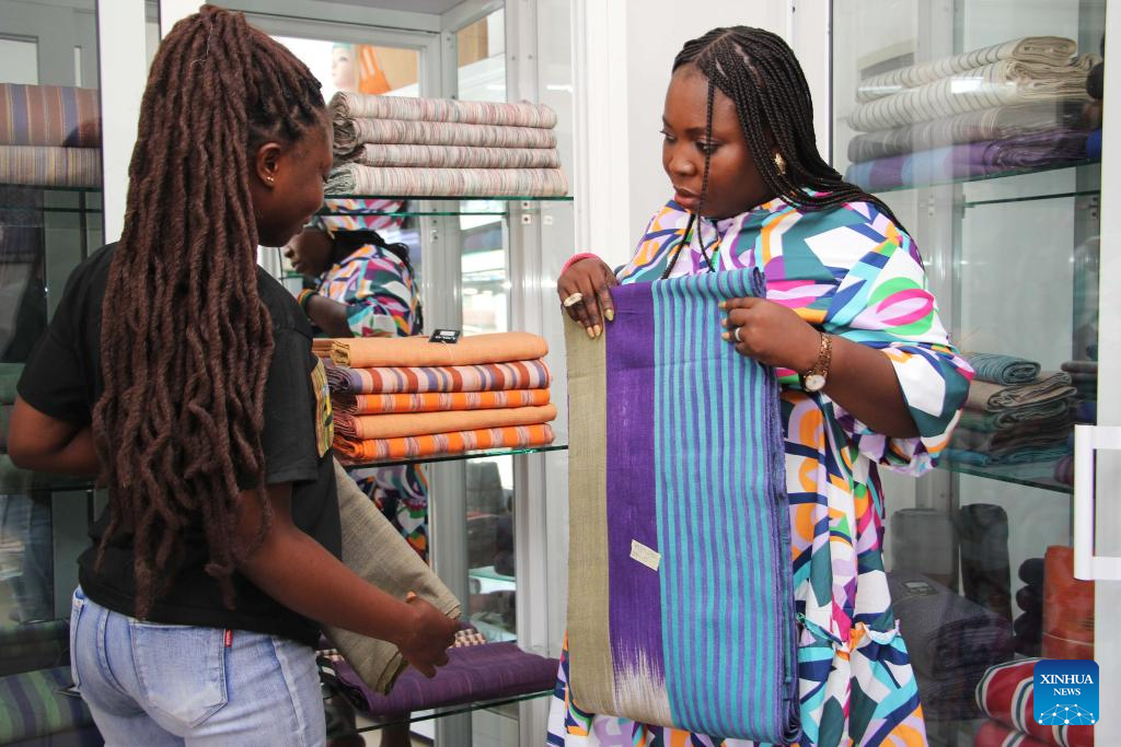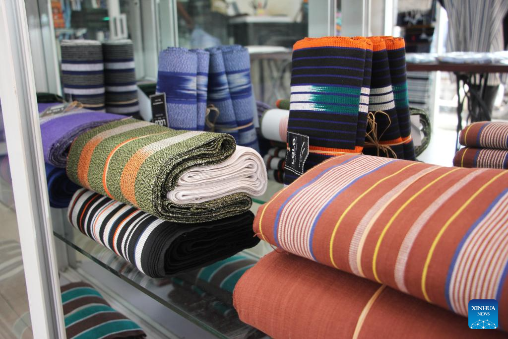 The traditional Kanvo cloth of Benin, with its intricate patterns and rich colors, is hand-woven from cotton and linen and has a long history and deep cultural heritage. Traditional Kanvo has been often used for ceremonies and celebrations. In recent years, with the promotion of the Beninese government and the innovation of local designers, this fabric has gradually been integrated into modern design and widely introduced into people's daily life. (Photo by Seraphin Zounyekpe/Xinhua)