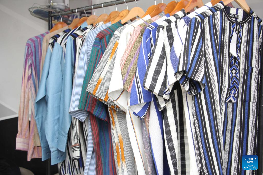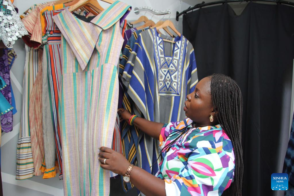 This photo taken on Nov. 18, 2024 shows clothing made of traditional Kanvo cloth in Cotonou, Benin.