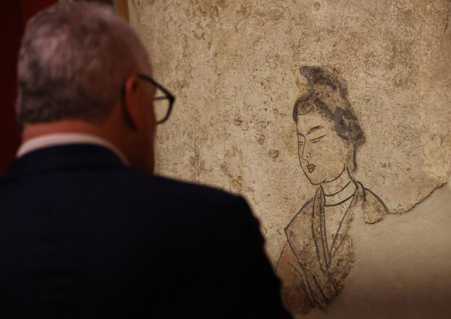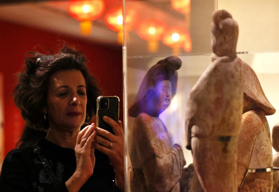 People visit an exhibition titled "Tang China -- A Cosmopolitan Dynasty (7th-10th Century)" at the Guimet National Museum of Asian Arts in Paris, France, Nov. 18, 2024. (Xinhua/Gao Jing)