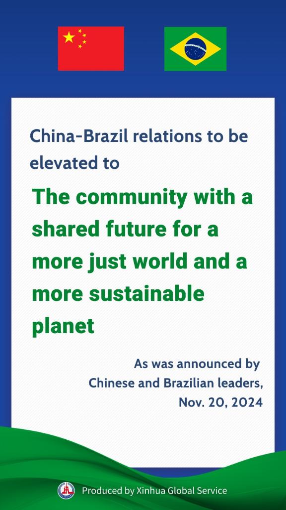 Unveiling another landmark in bilateral relations, China's Xi and Brazil's Lula elevate China-Brazil ties to the community with a shared future for a more just world and a more sustainable planet, and the Belt and Road Initiative will be synergized with Brazil's development strategies.
