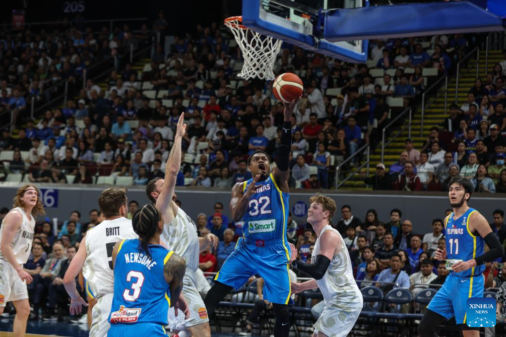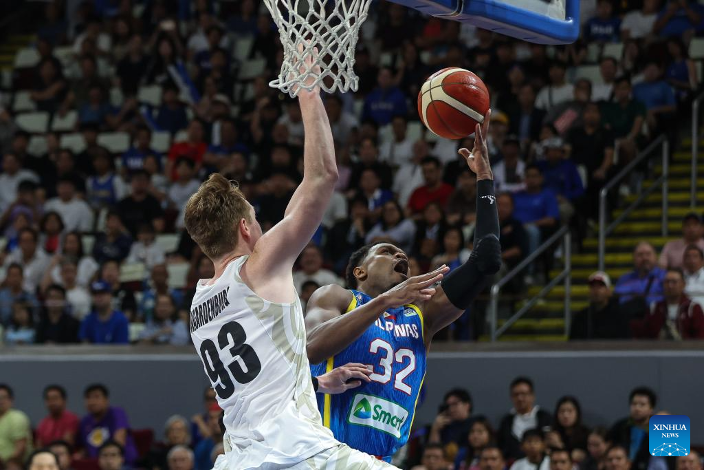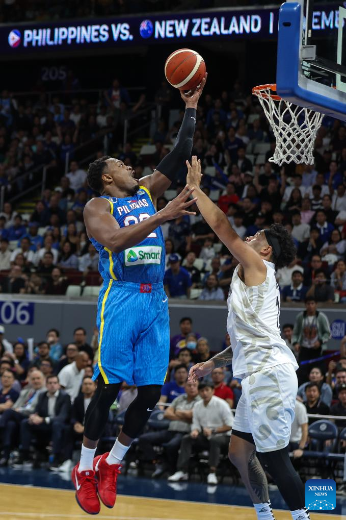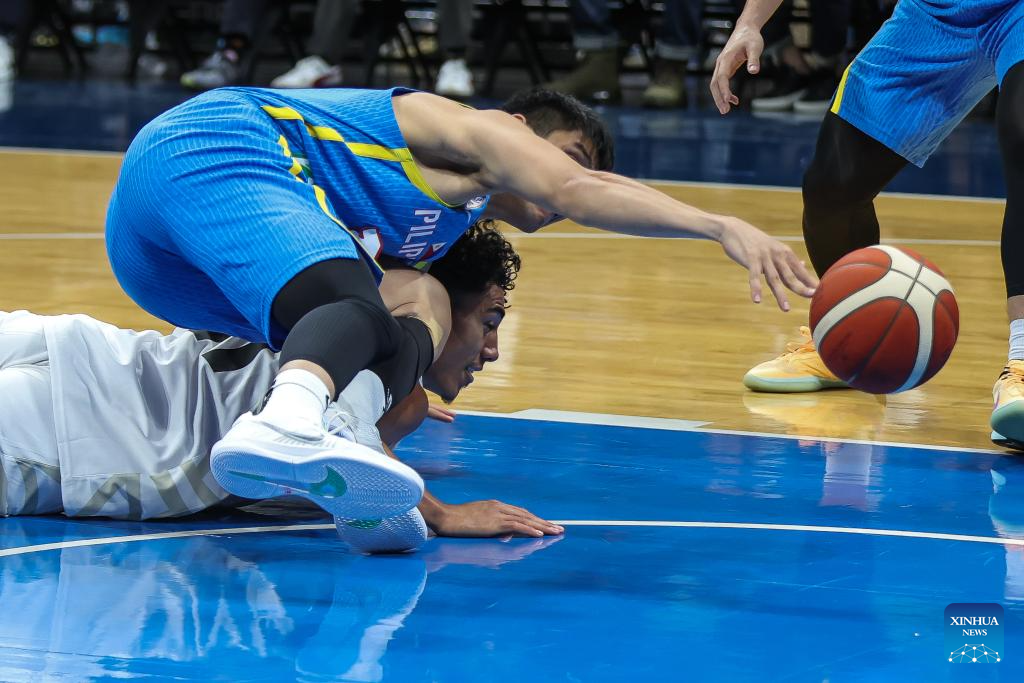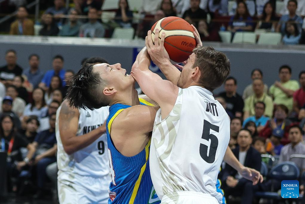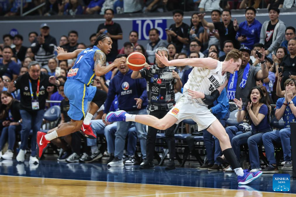 Dwight Ramos (L) of the Philippines competes against Taylor Britt of New Zealand during the match between New Zealand and the Philippines at the FIBA Asia Cup 2025 Qualifiers in Pasay City, the Philippines on Nov. 21, 2024. (Xinhua/Rouelle Umali)