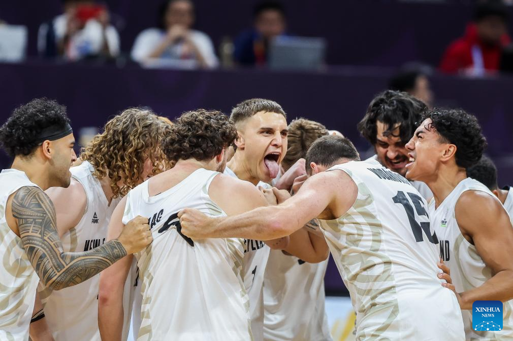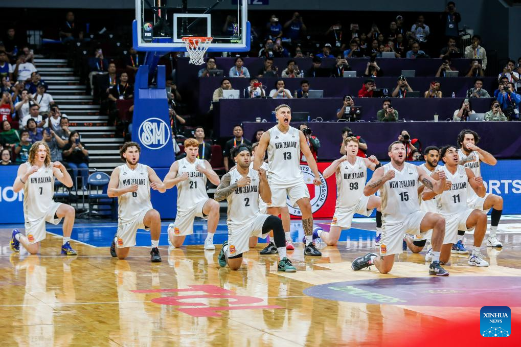 Players of New Zealand perform Haka before the match between New Zealand and the Philippines at the FIBA Asia Cup 2025 Qualifiers in Pasay City, the Philippines on Nov. 21, 2024. (Xinhua/Rouelle Umali)
