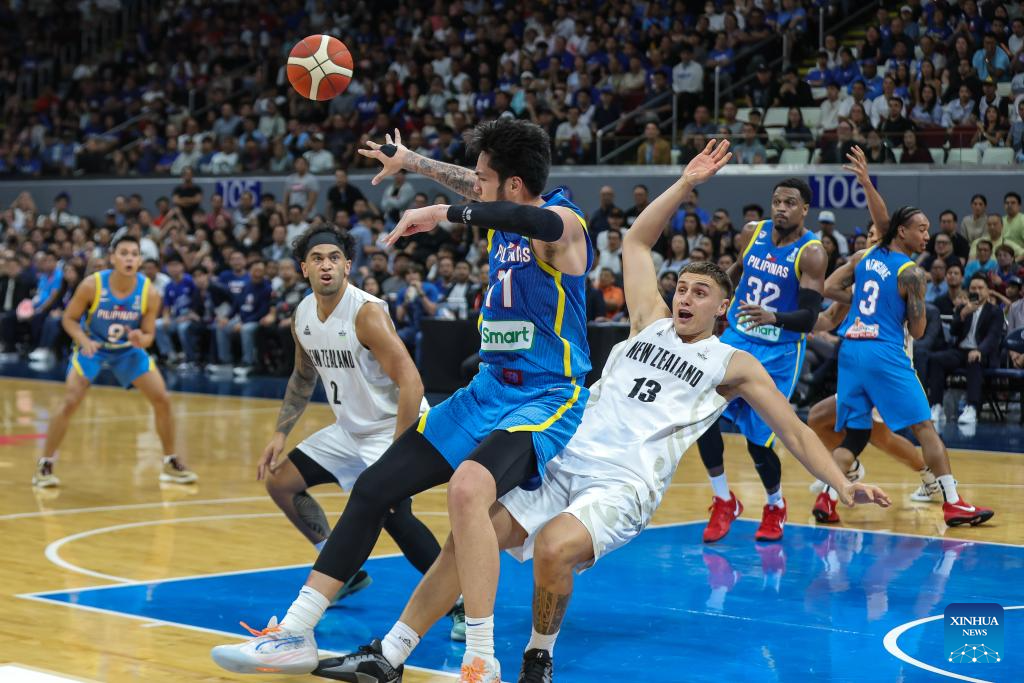 Sotto Kai (front) of the Philippines passes the ball during the match between New Zealand and the Philippines at the FIBA Asia Cup 2025 Qualifiers in Pasay City, the Philippines on Nov. 21, 2024. (Xinhua/Rouelle Umali)