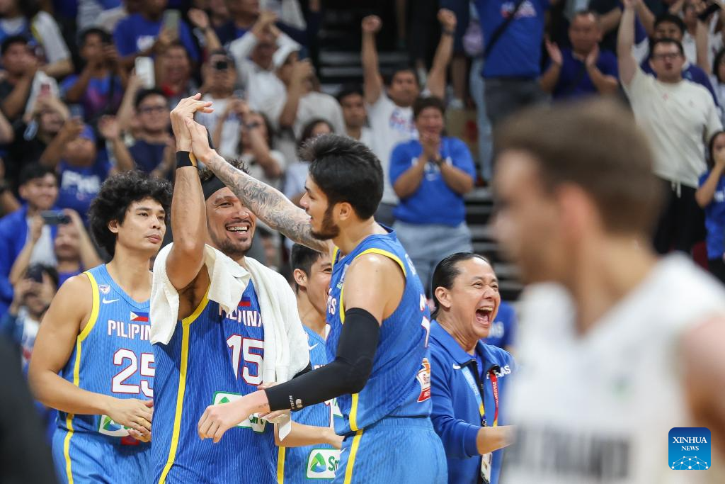 Players of the Philippines celebrate after winning the match between New Zealand and the Philippines at the FIBA Asia Cup 2025 Qualifiers in Pasay City, the Philippines on Nov. 21, 2024. (Xinhua/Rouelle Umali)