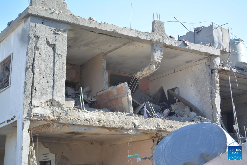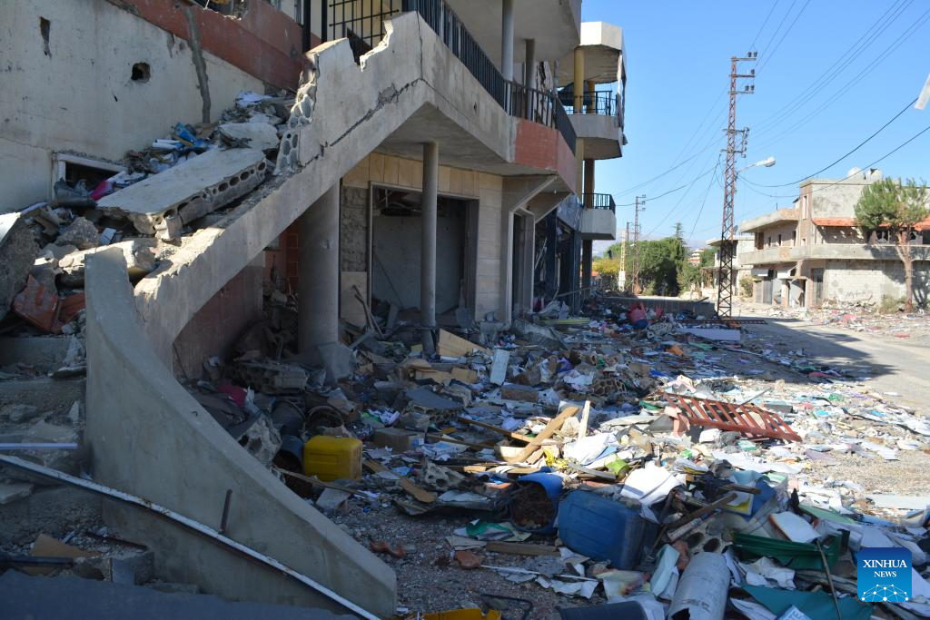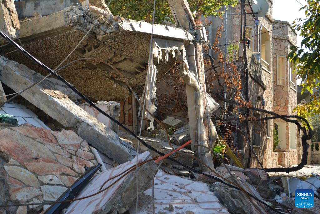 This photo shows the damage caused by Israeli airstrikes in eastern Lebanon's Sahmar on Nov. 22, 2024. Lebanese military sources, who spoke anonymously, told Xinhua that the Israeli military on Thursday launched 48 airstrikes in southern and eastern Lebanon, while targeting 18 border towns and villages in southern Lebanon with about 100 shells. (Photo by Taher Abu Hamdan/Xinhua)